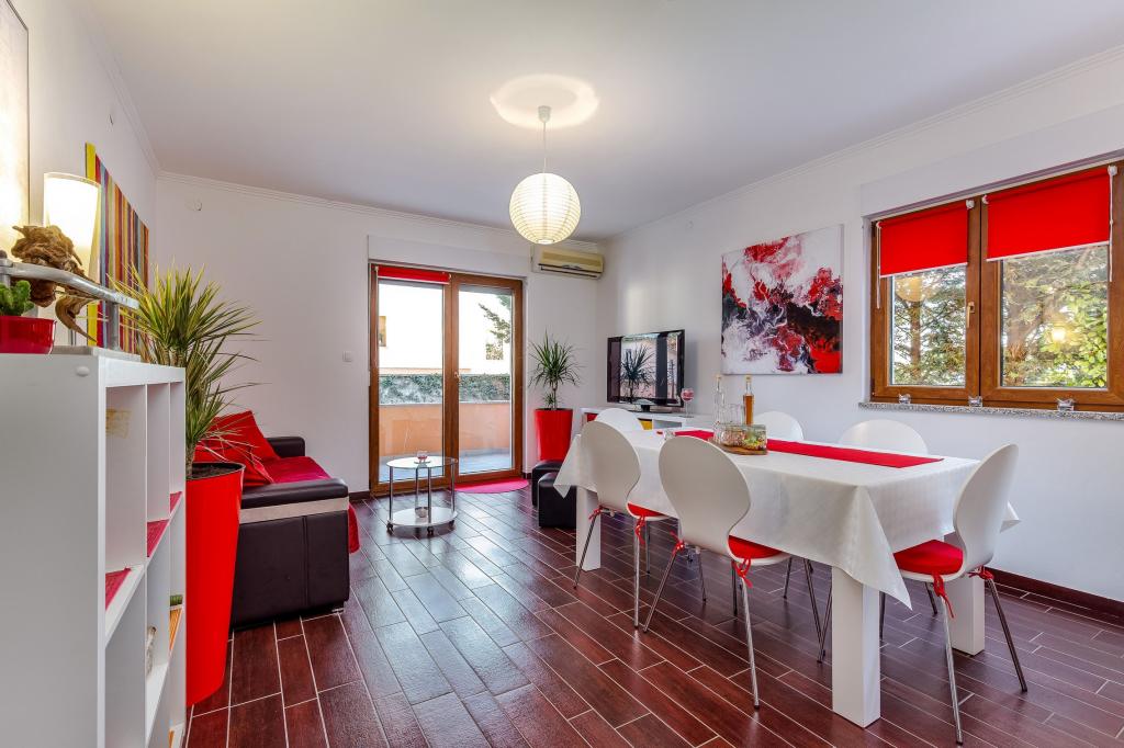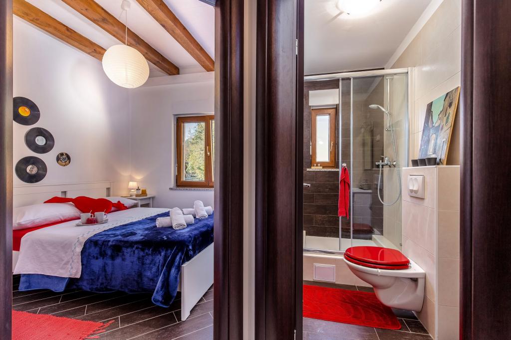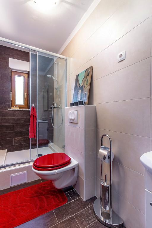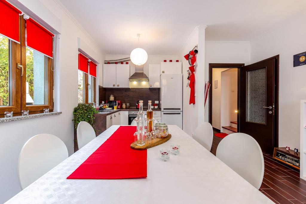 The apartment is equipped with everything you might need for your pleasant vacation. There is a living room with a flat screen cable TV set, PS2 with games, a dining room and a kitchen equipped with new and modern appliances, pots, dishes and cutlery if you wish to prepare your own meals. There's also a bathroom with a spacious shower cabin and a pantry with a washing machine. If you wish to enjoy the fresh air of the forest nearby, all you have to do is step outside on the balcony and relax your mind and body on the garden furniture or in the yard with a barbecue set. On the first floor there is a master bedroom with a queen size bed, a closet and a private balcony with garden furniture. There is also a bedroom with a full bed and another bathroom with a shower cabin. The apartment Wi fi Internet usage, air conditioning on both floors, floor heating and private parking are all included in the price of your stay.