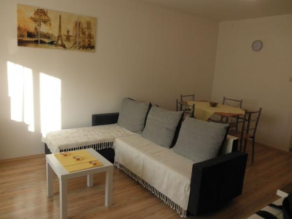 The newly renovated Banska vrata apartment is situated at the very entrance to Rijeka - Centar, below the famous Trsatska Gradina and only 200 m from the strict center - the promenade of Korzo. In the immediate vicinity of all city facilities - bank, post office, market, theater, restaurants, cafes; 200 m away from the famous Trsat stairs leading to the shrine of Our Lady of Trsat, and 10 minutes by car to the beach. The apartment consists of kitchen, dining room, living room, bathroom and bedroom with 2 beds, and can use up to 2 extra beds.