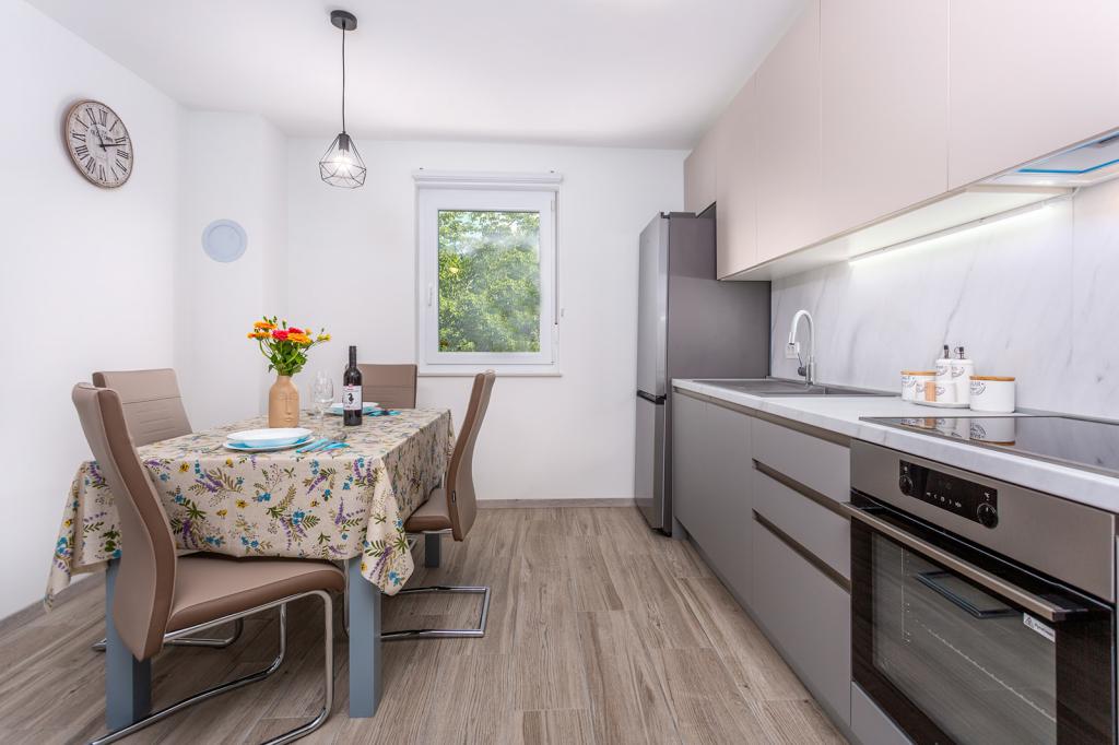 Enjoy the view and relax in our brand new apartments, located in a quiet village. Our location is the perfect starting point for day trips to Istria, the Kvarner islands or the surrounding mountain landscapes. Only a short drive separates you from local beaches, forest hiking trails or the city center. The easiest way to get around is by car, but public city bus transport is about 8 minutes away on foot. The apartments are a 5-minute drive from the highway, which quickly connects you to the entire Kvarner, Gorski Kotar and Istria. The supermarket is a 2-minute drive away, and the nearest beach is 10-15 minutes away.