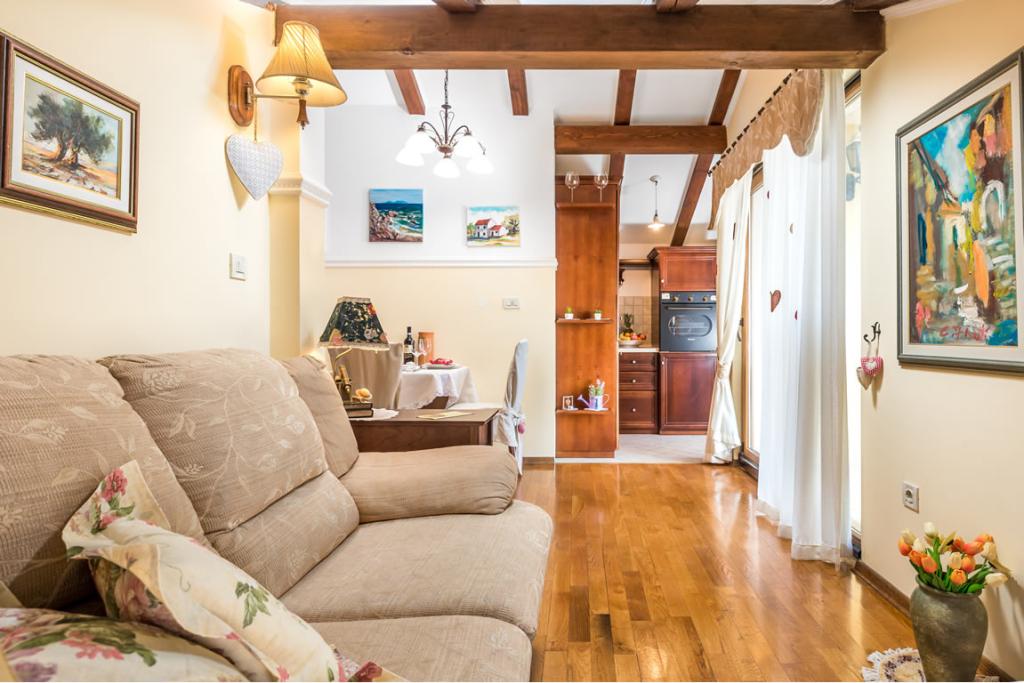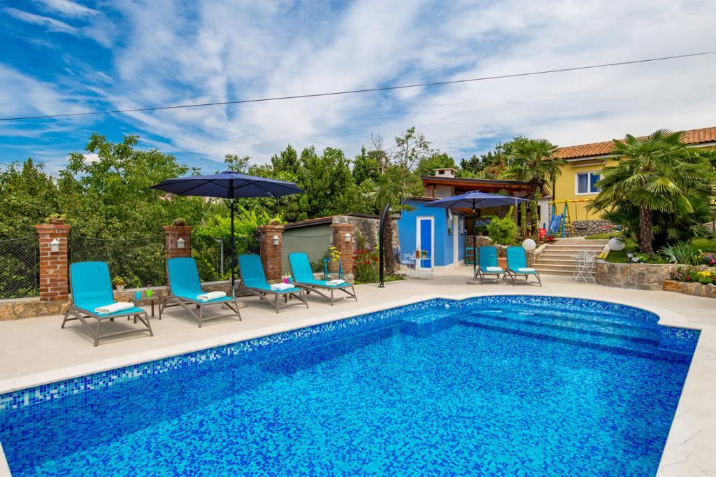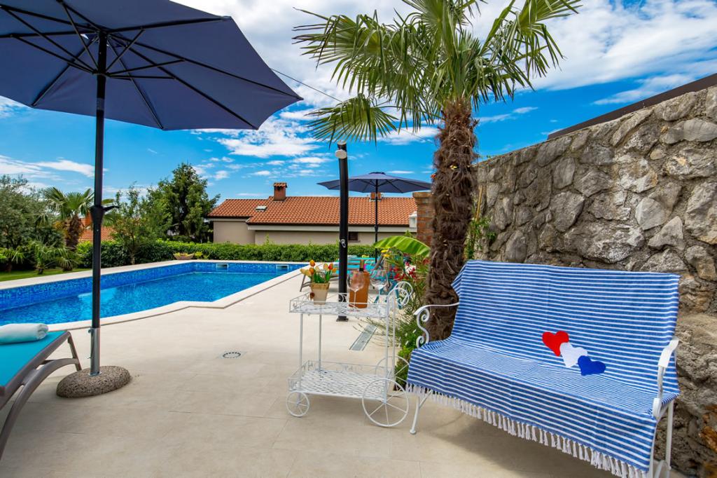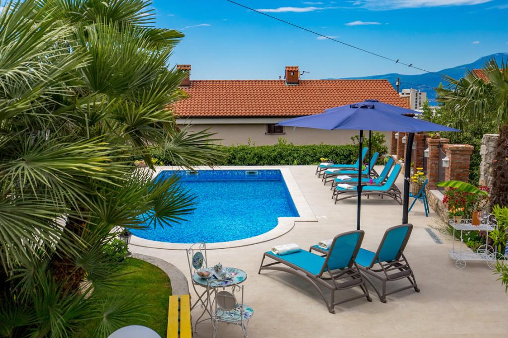 Patricia Apartments is located in a quiet location just 5 kilometers away from the city center of Rijeka and the beach. The apartments are 75 and 35 square meters, equipped for 2 - 6 persons. The apartments are newly renovated, equipped with a bathroom with toilet, a spacious and fully equipped kitchen, and a living room with a sofa bed and a television. Apartments have sea view. Guests of the apartment have at their disposal a swimming pool and barbecue with a terrace surrounded by greenery, a children's playground and parking in front of the house. The apartments have air conditioning and WI-FI internet.