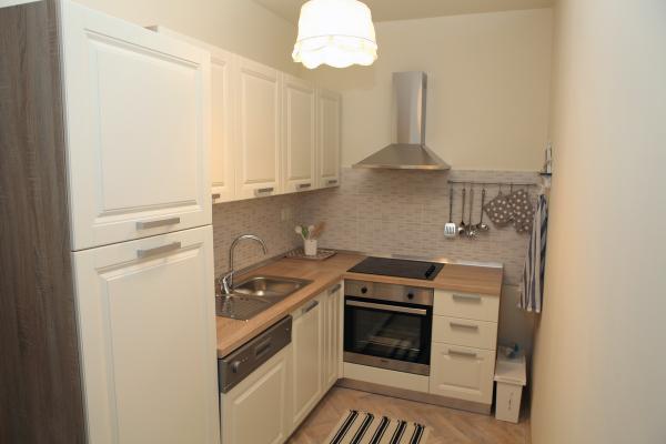 Mediterranean chic in the center of the old town of Rijeka, just below the Cathedral. Vida, close to the lively Corso. Perfectly located for the complete experience of the city of Rijeka and easily explore the city without using the car. Bedroom with double bed (180x200 cm), living room with sofa bed (spring mattress 140x195 cm tzv.francuski bed), kitchen, bathroom with bath and toilet, additional separate toilet and cozy balcony loggia with outdoor seating. The well equipped so that you feel at home: free Wi-Fi internet, air conditioning, LED satellite TV, fully equipped kitchen with dishwasher, ventilation oven, ceramic plate with four heater, fridge and freezer; washing machine, hairdryer, tourist set for bathing. Change of sheets and towels per week; possibility of changing towels daily upon request.