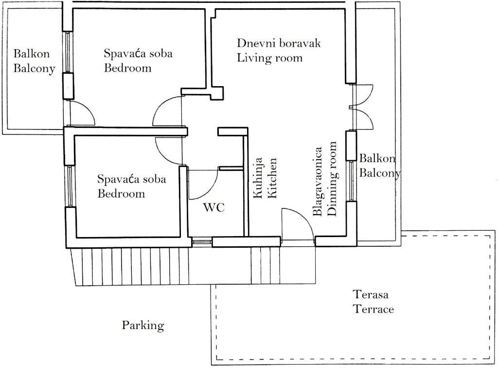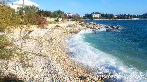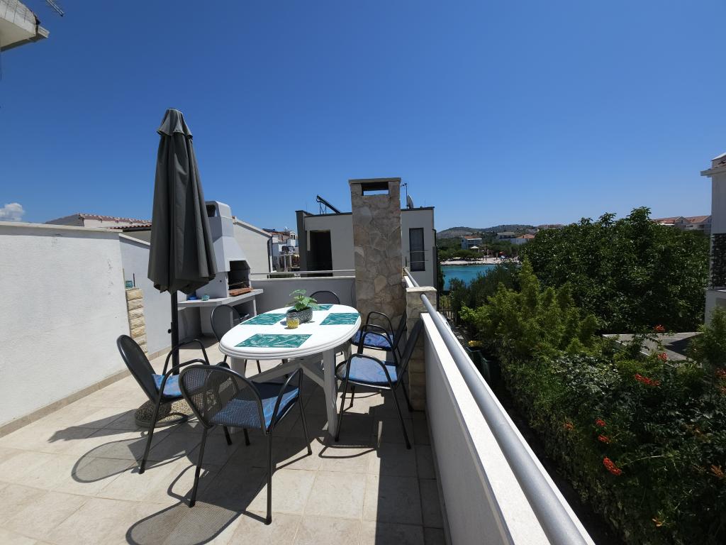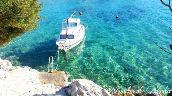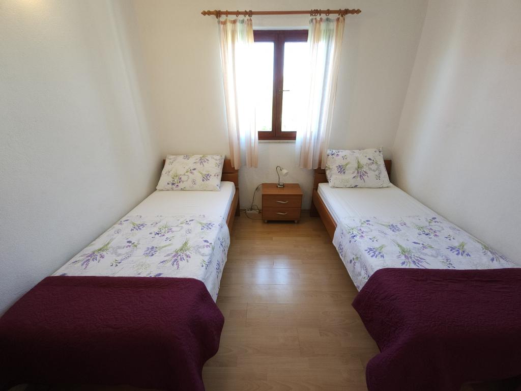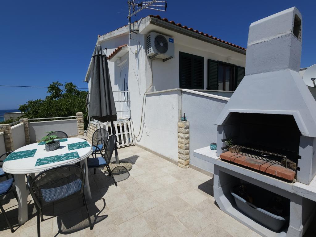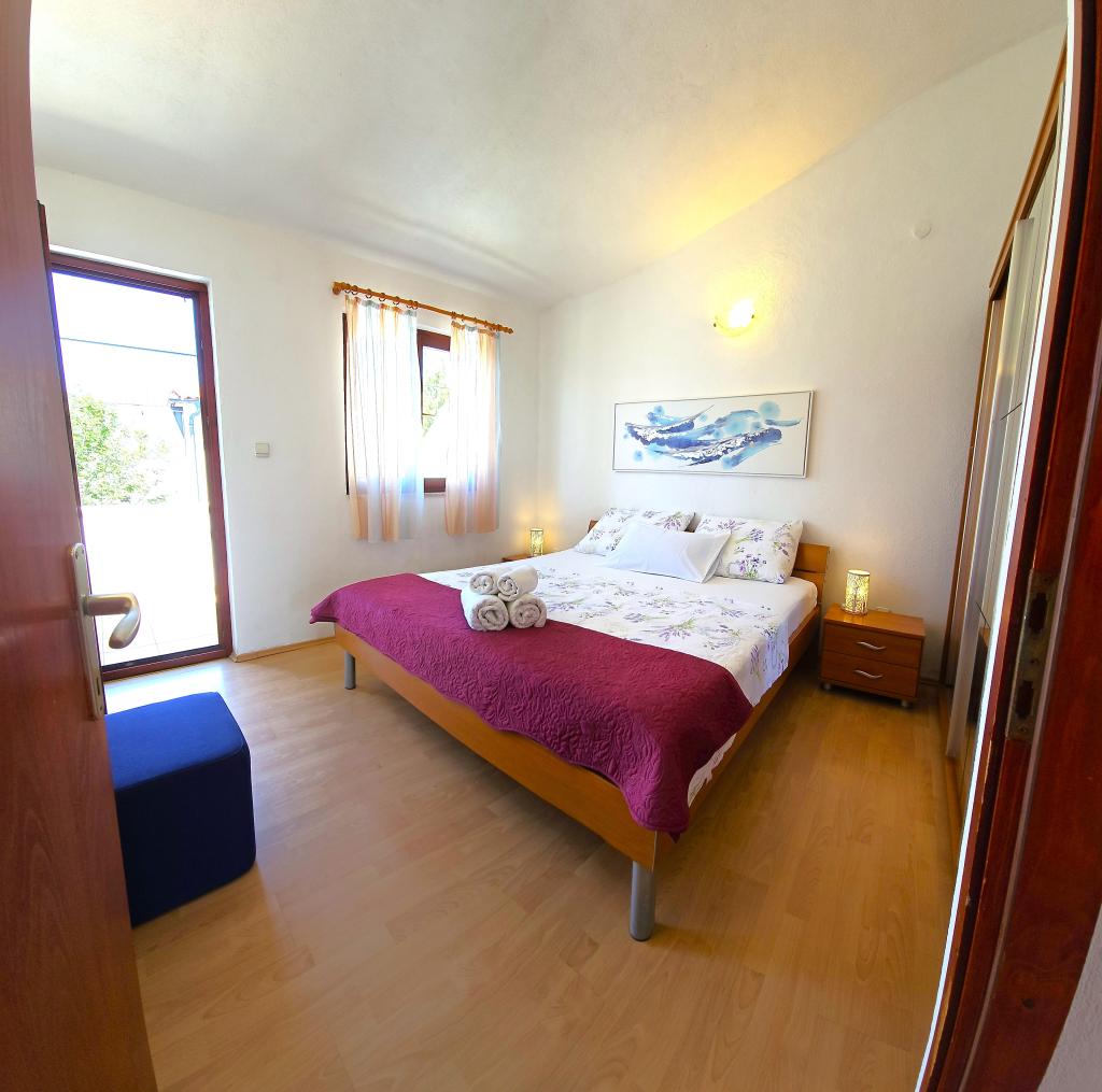 Apartment Anita is located in a quiet environment. On the first floor, you will have a beautiful sea view from all three sides of the apartment and not on the main road. The apartment area is 65 m2 and has two balconies and a terrace. The apartment has two rooms (one is a double room and the other one has two single beds), bathroom, kitchen and a comfortable living room with air conditioning and a smart satellite TV. The apartment at the entrance has a large terrace with sunshade, seating area and barbecue. The apartment has free internet. One parking space is in front of the house. The distance from the sea and the beach is 20 m and the nearest shop is 100 m. There are various beaches, from pebble to rocky and those that are concreted. The most beautiful are pebbles where you can find the natural shade of trees or if you want you can use our sunshades for the beach.