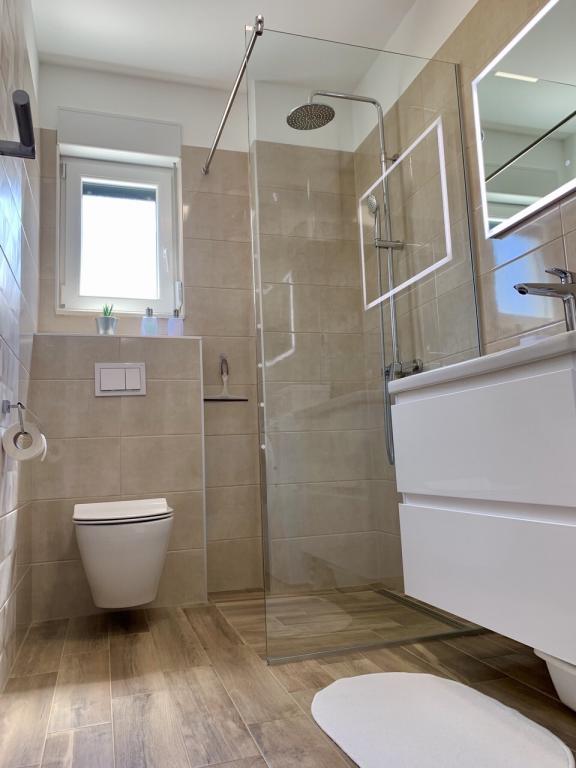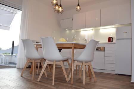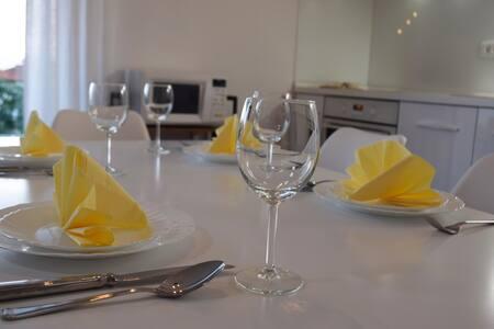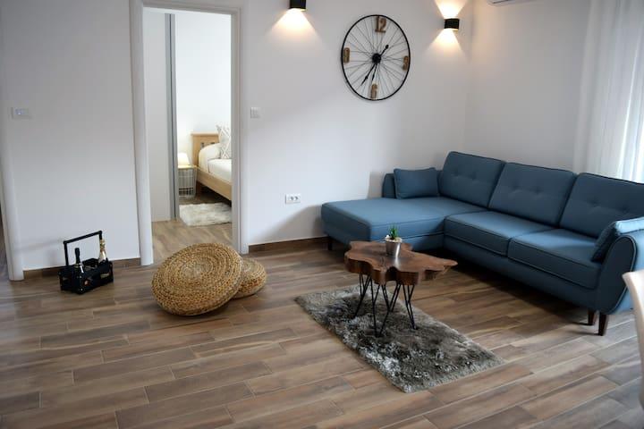 New, modernly equipped Apartment LEDO is located in the most beautiful part of Rogoznica - LOZICA, only 80 m from the sea and the pebble beach with children's playground, cafe, as well as the beach Sepurina which offers various facilities (cafes, restaurant, water slide, water sports, rent pedal boat and boat ...) The apartment is intended for 5 people, super comfortable (60 m2), two bedrooms, with balcony, offers unlimited WI FI, noiseless air conditioning, satellite programs, large flat screen TV, private parking space in front of the building. It is located on the first floor of a new, small residential building in a quiet area, near the sea, and takes only 15 minutes walk to the center of Rogoznica and Marina Frapa, as well as to the natural phenomenon of the sea lake Zmajevo around which you should definitely visit.