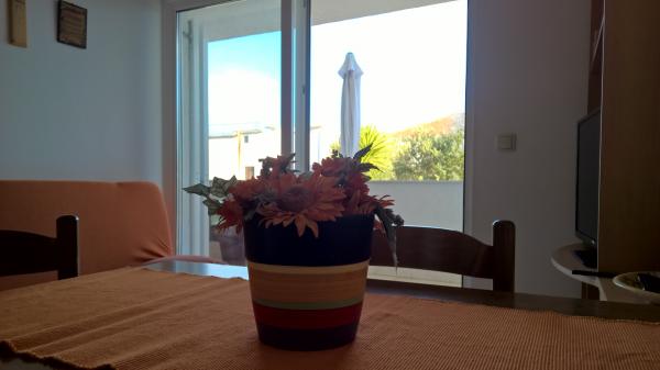 Apartment located in a quiet bay, close to the beach and promenade. The property has 2 bedrooms, bathroom, kitchen with dining area. The apartment has a terrace, a table, chairs and umbrella. In front of the apartment large courtyard with fireplace. Near the center, cafes and restaurants.
