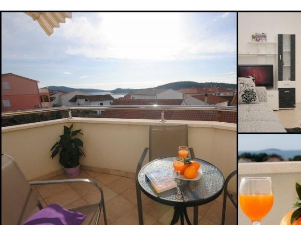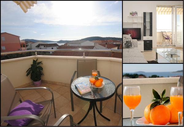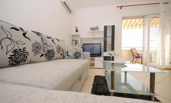 Fully equipped and newly furnished apartment with a view of the sea and islands, situated 5 minutes walk from the center and 5-10 minutes walk from the beautiful beaches and marina Frapa. Shops, restaurants, ATM and other facilities are located 5-10 minutes walking distance.