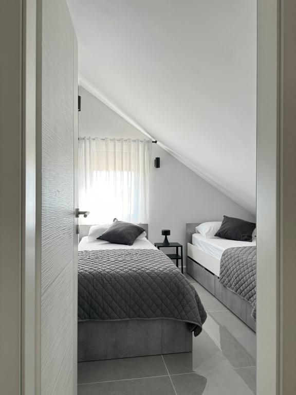 "Rojena Valo" is a comfortable and spacious apartment in the lovely place of Rogoznica. Located on the second floor of a new building with free parking lot, close to the sea and beaches (100m by the walk distance from both, Lozica and Sepurina beaches), it will enchant you fully and exceed all your expectations. Very close to the center of the town, where you can find all shops, bars and restaurants. Marina Frapa is close, as well. The two floors apartment consists of three bedrooms, bathroom, toilet, kitchen, dining room, living room and a wonderful balcony/terrace with a sea view. Excellent equipped apartment with fast WI-FI connection, two air-condition units and all You need for perfect and relaxing vacation. Cities of Split, Sibenik and Trogir, all UNESCO Heritage, are on very short road distance and very accessible for daily trips or night outs. Split Airport, located in Kastela, on a close distance with good connections, too.