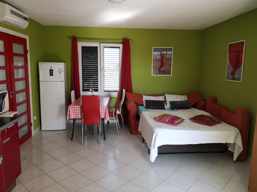 The apartment was clean overall, but I was disappointed with the mattress – it was dirty and had many visible stains. I pointed this out to the owner, but instead of replacing it, he simply turned it over to the other side where the stains were less noticeable. Another inconvenience was that only one of the two stove burners was working. On the positive side, the owners were polite and friendly. The apartment is located in a quiet part of Rogoznica, but it takes at least half an hour on foot to reach the town center. Alternatively, you can drive there and pay for parking.
