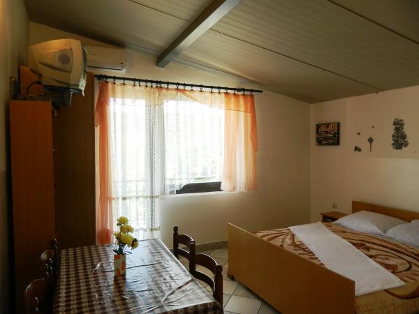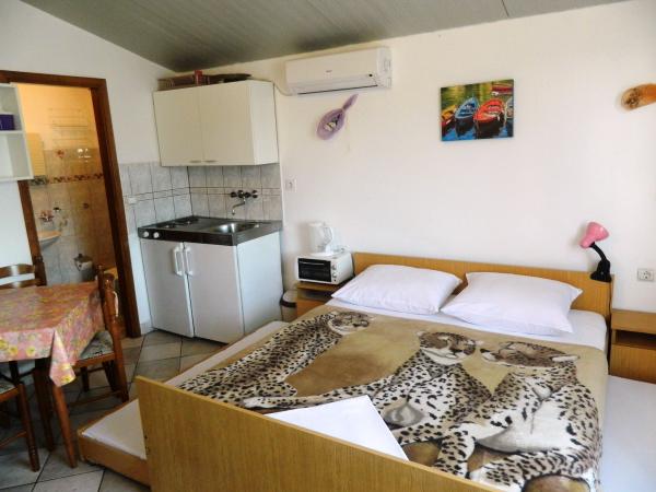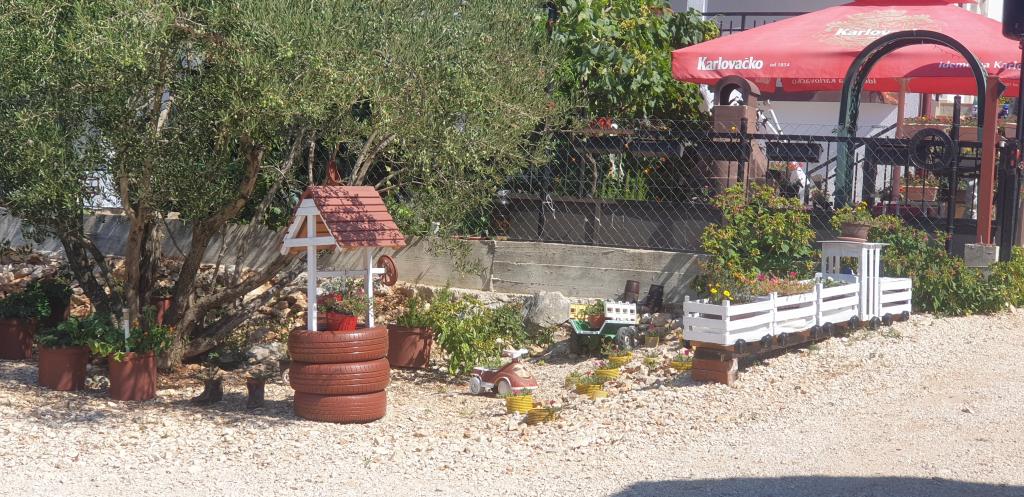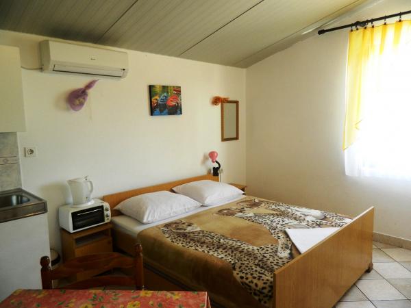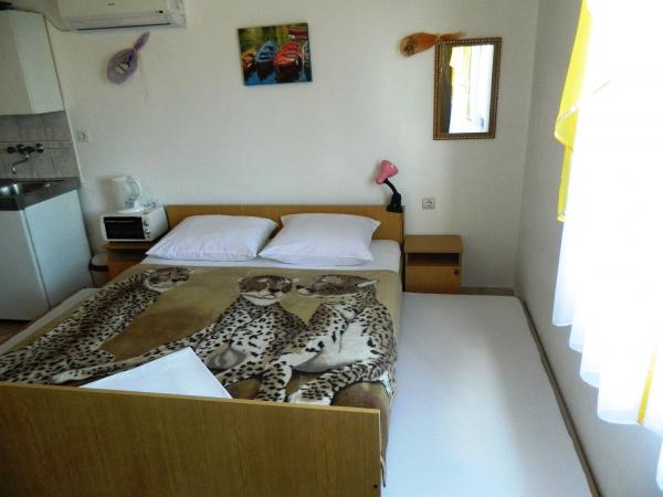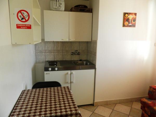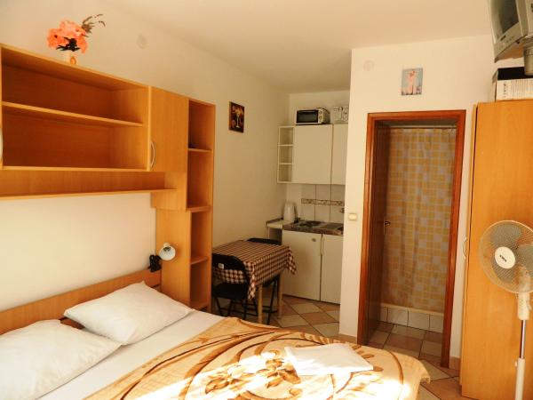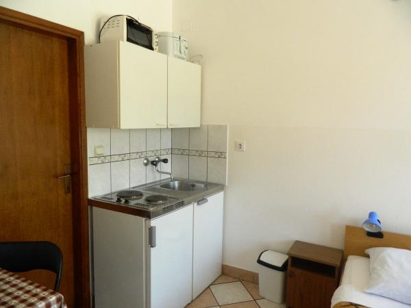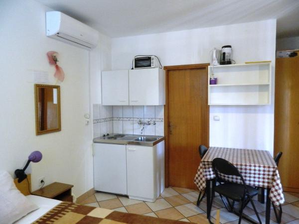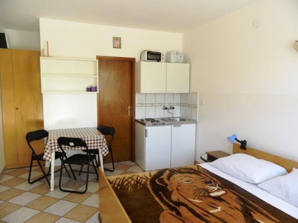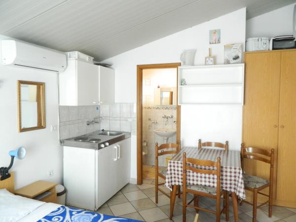 The house with 7 studio apartments is located in a quiet place Stupin čeline (Podglavica) 2.7 km from the center of Rogoznica. We offer our guests: -In addition to the standard equipment of mimi kitchen (dishes), the kitchen is equipped with a fryer, electric pan, coffee maker and on request an electric mini oven -free WIFI-Internet -We have a covered space for fun and play they find table tennis, table football and a sandpit with toys. -We offer our guests free use of bicycles and a berth for a boat in the port of our place. -We have provided guests with parking and a barbecue with a covered area and a table for consuming food and drinks.