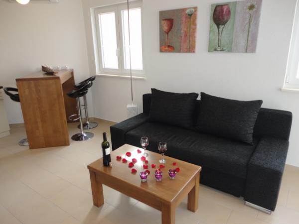 Modern apartment in a quiet part of Rogoznica is a great choice if you want to spend your vacation in a small town in central Dalmatia. The apartment is located just 5 minutes walk from the city center and the sea, and 10 minutes from the beach. Located in a quiet environment. It has a beautiful terrace that offers excellent views of the sea. The object is allowed to stay pets. There is a parking place is free and booking is not required.