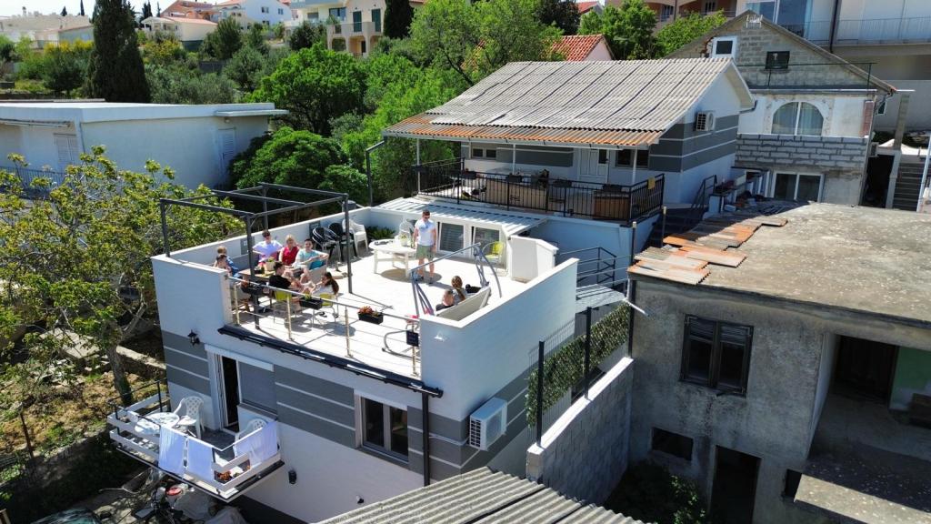 Spacious entire house for up to 16 people, ideal for larger families or groups of friends who want to enjoy a vacation near the sea. Guests have at their disposal a large terrace of 50 m² with a beautiful view of the sea, perfect for social gatherings, outdoor meals and enjoying the sunsets. There is also a gas grill on the terrace, ideal for preparing delicious meals in a relaxed atmosphere. Parking for 5 cars is provided in front of the house, and 5 bicycles are available to guests, perfect for exploring the surroundings and pleasant rides by the sea. The house is located in an excellent location, only 150 m from the sea and the beach, surrounded by greenery and natural shade, providing a perfect combination of comfort, privacy and proximity to all amenities for an unforgettable vacation.
