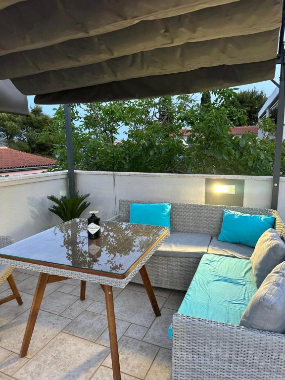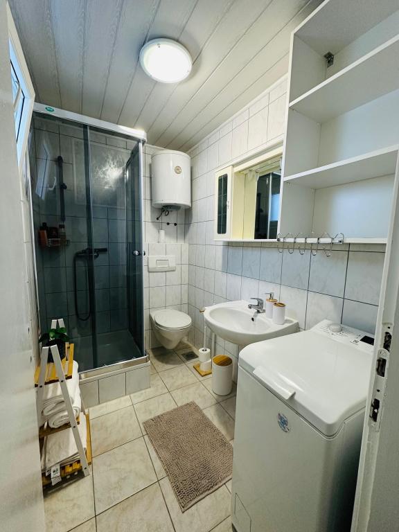 The apartments are only 150 m from the sea and the beach, situated in a pleasant natural environment with lots of trees that provide natural shade and an ideal ambiance for relaxation during hot summer days. There is a shower on the beach, and right next to the beach there is a cafe, perfect for a morning coffee or a refreshing drink by the sea. The Tommy supermarket can be reached by a leisurely walk along the sea in just 12 minutes, which makes the location very practical for a pleasant and carefree vacation.