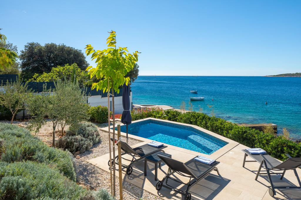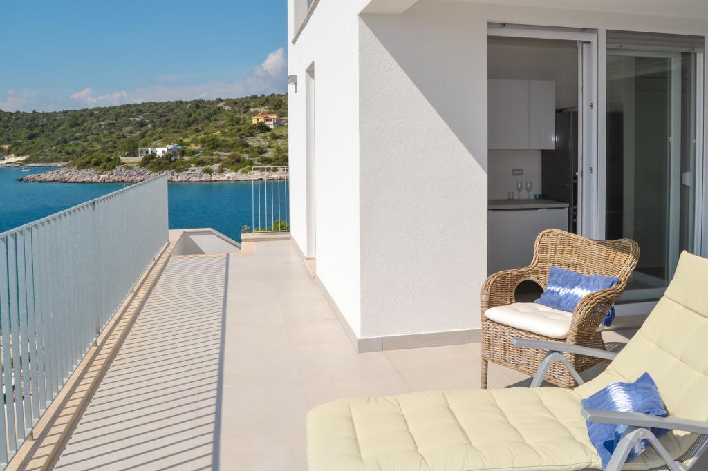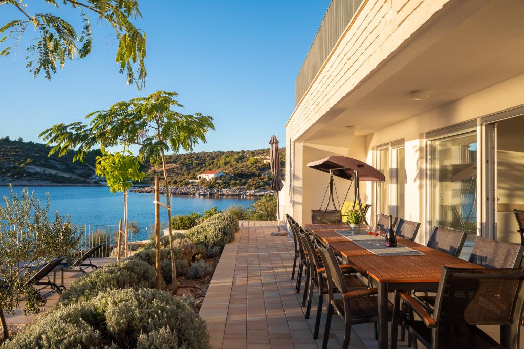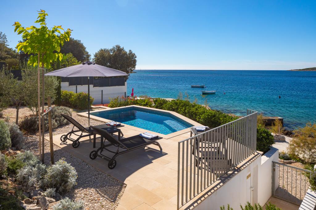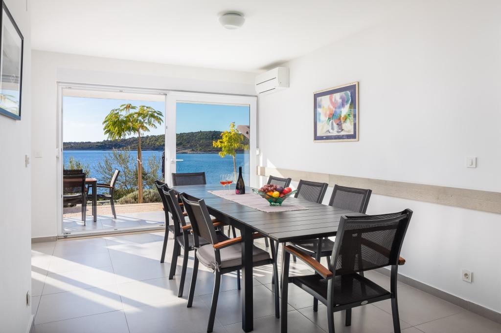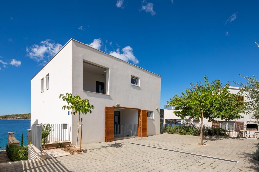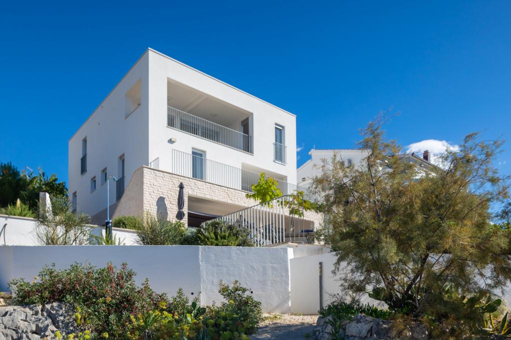 Villa CapeCarol is located in the very heart of sunny Dalmatia, in the tourist resort of Kanica. This modern villa is located right next to the coast and offers a magnificent panoramic view of the crystal clear sea and the untouched nature that surrounds it. The beautiful villa CapeCarol with a living area of 310 m2 offers its guests the privacy of a stay on three fully equipped floors-apartments. Both the exterior and the interior of the house are characterized by a clean, modern style that gives the villa a natural, pleasant atmosphere. Each 95m2 apartment has a large living room and kitchen, 2 bedrooms (1 with a double bed and 1 with separate beds) and 2 bathrooms. Each apartment has a large terrace with a beautiful view of the sea. Exclusive use of the swimming pool (15 m2) and the front yard/terrace is available with the rent of the SeaCarol apartment on the ground floor. The villa has a total of 3 private parking spaces, 1 space for each apartment. Mooring for a smaller boat is possible.