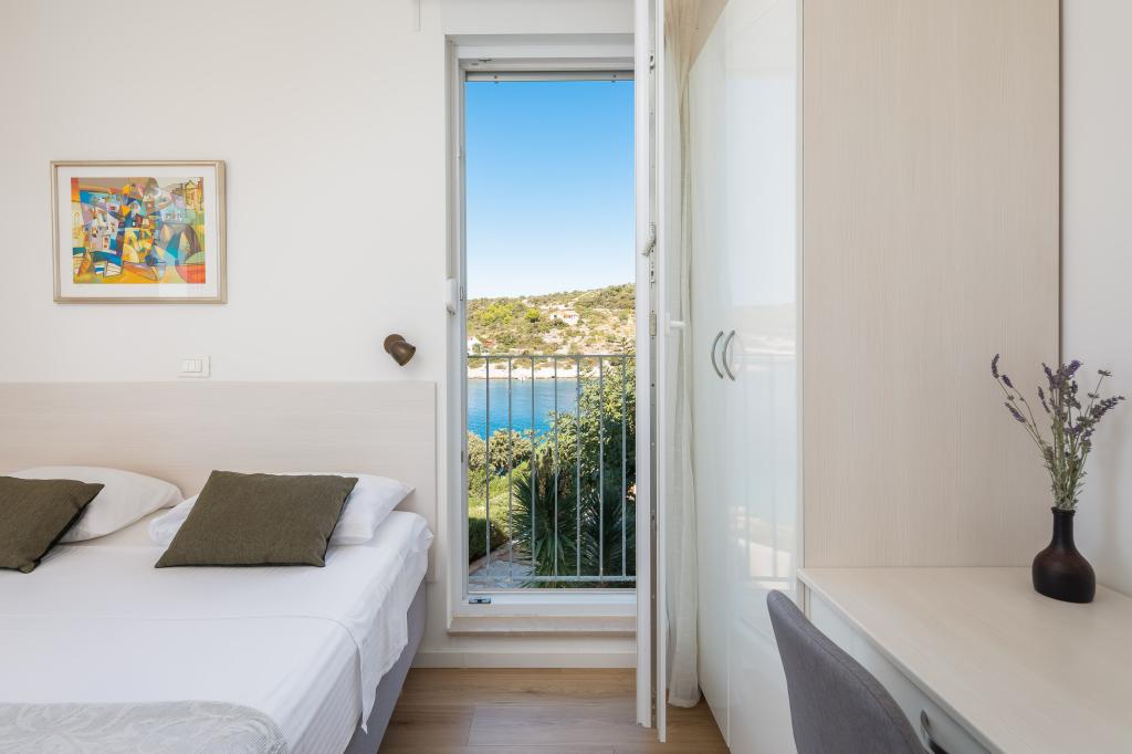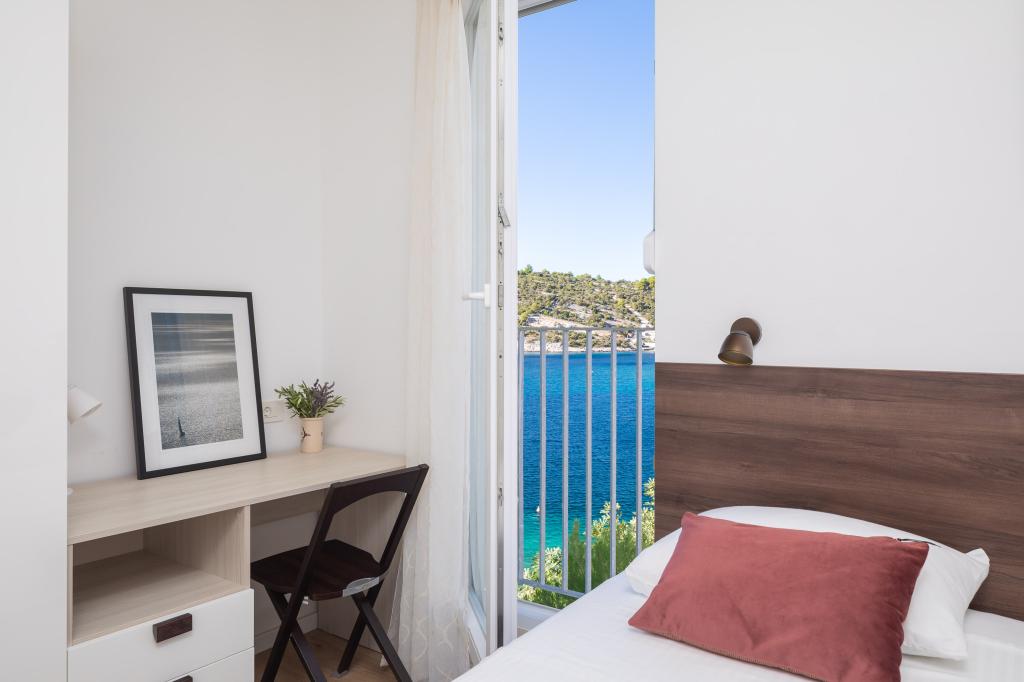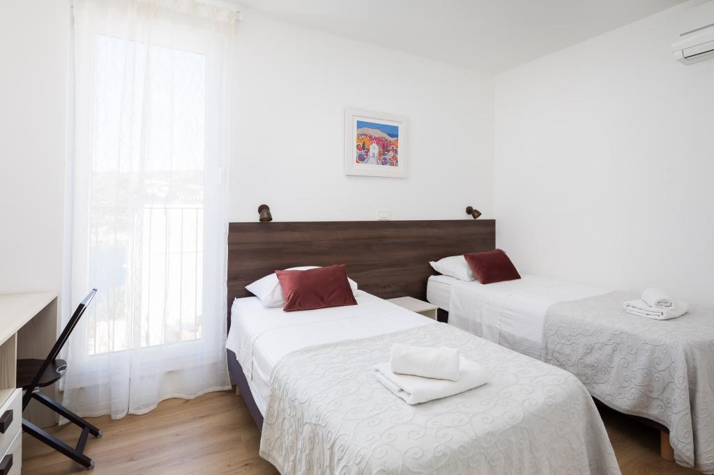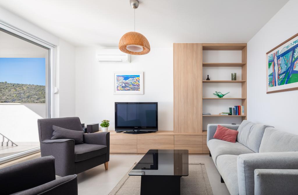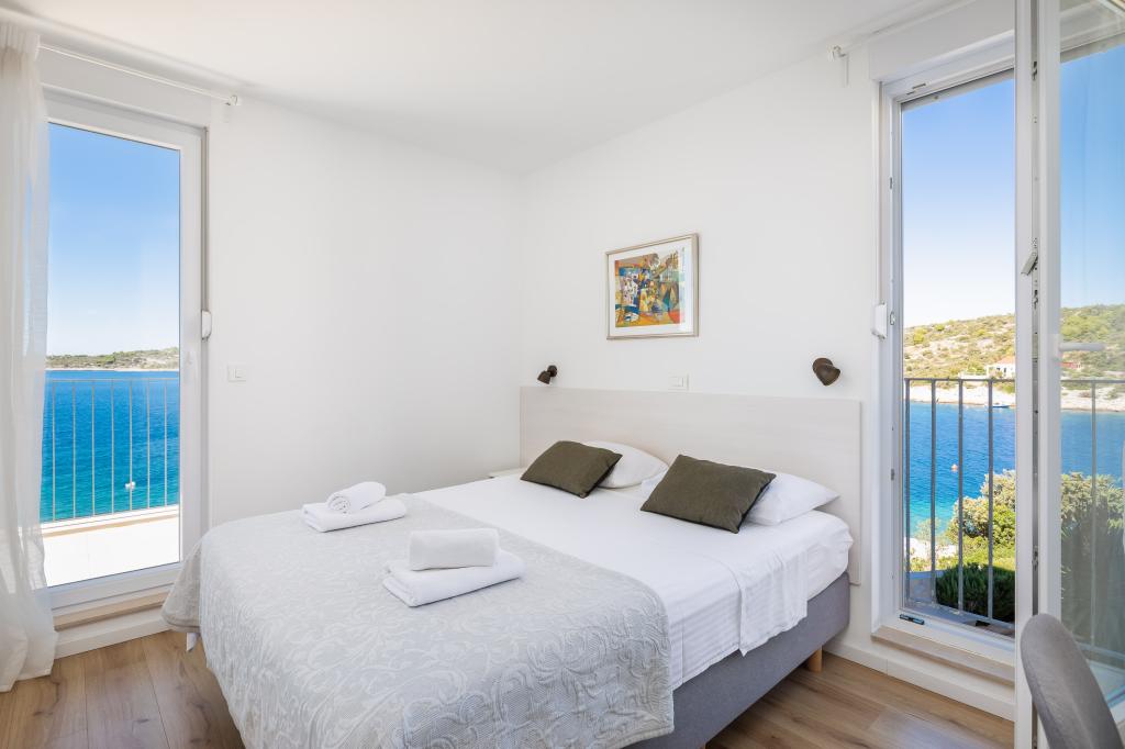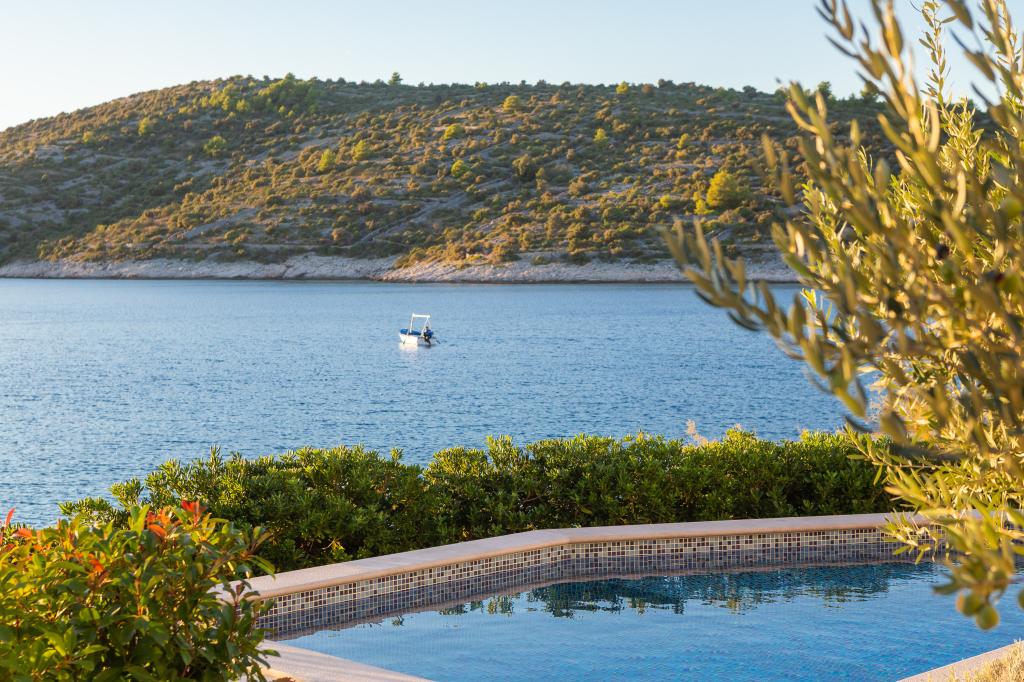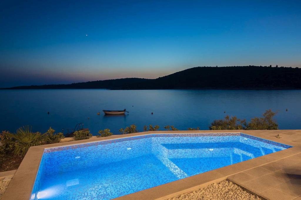 Villa CapeCarol is located in the very heart of sunny Dalmatia, in the tourist resort of Kanica. This modern villa is located right next to the coast and offers a magnificent panoramic view of the crystal clear sea and the untouched nature that surrounds it. The beautiful villa CapeCarol with a living area of 310 m2 offers its guests the privacy of a stay on three fully equipped floors-apartments. Both the exterior and the interior of the house are characterized by a clean, modern style that gives the villa a natural, pleasant atmosphere. Each 95m2 apartment has a large living room and kitchen, 2 bedrooms (1 with a double bed and 1 with separate beds) and 2 bathrooms. Each apartment has a large terrace with a beautiful view of the sea. Exclusive use of the swimming pool (15 m2) and the front yard/terrace is available with the rent of the SeaCarol apartment on the ground floor. The villa has a total of 3 private parking spaces, 1 space for each apartment. Mooring for a smaller boat is possible.