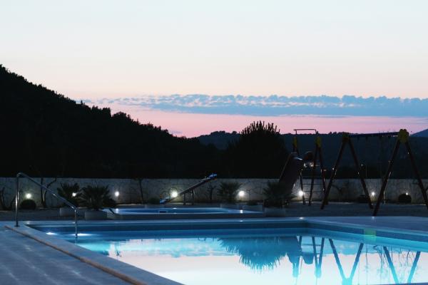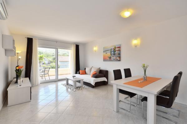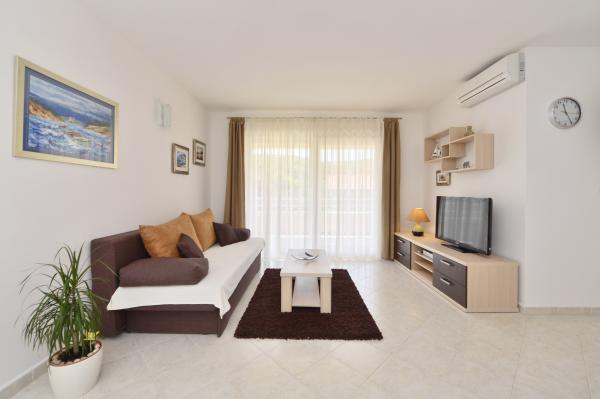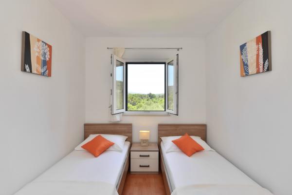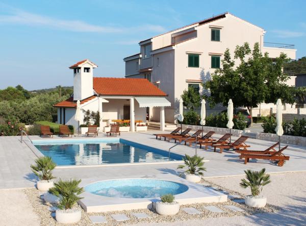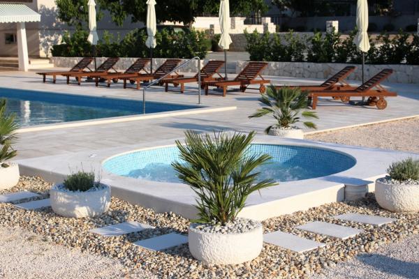 Villa Diva is situated in a quiet location near Rogoznica. It consists of four comfortable apartments (60 m2). It is ideal for a break from everyday life, and provide a pleasant and warm atmosphere. It is surrounded by 1500 m2 plot of land on which they are situated, and a large swimming pool (68 m2), outdoor whirlpool, beach chairs, umbrellas, outdoor shower and toilet. Nearby is a mini playground, which includes swings, slide and seesaw. Barbeque is always available for use, and family gatherings. The beach is 500m or 10 minutes walk.