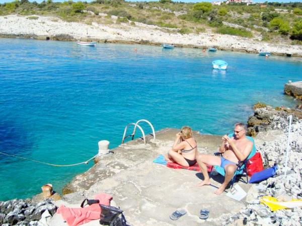 We were 4 adults and 3 children aged 5 to 15 years in the apartment. The apartment was very clean, spacious with a large balcony overlooking the sea. The owners are incredibly friendly, helpful and nice. They gave us some great tips on good restaurants and places to visit. On the beach Stressed breeds are poured into the karst rocks, where you can enjoy the wonderful day. The sea is then equal to very deep, so that the children can jump into the sea wonderful. At the head of the bay but you can also run flat into the water, there is pebble beach. The sea is beautiful and crystal clear. From the apartment you are with the car in 5 minutes in Rogoznica. Primosten, Sibenic, Trogir, Krka waterfalls, Split is to achieve anything great. An all-around great vacation! Recommended !!!