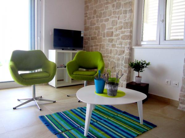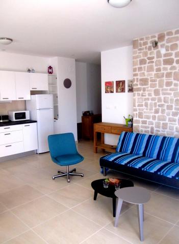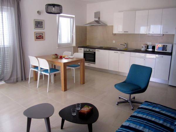 New and well equipped apartments, with designed interiors, in a quiet part of Rogoznica (town Zatoglav), by the sea, 10 meters from the beach, with large balconies or terraces and stunning sea views. Apartment no. 1 (Big Balcony Apartment) has 55 m2 and balcony of 16 m2. Apartment no. 2 (Terrace Apartment) has 62 m2 and a terrace of 17 m2. Apartment no. 3 (Penthouse Apartment) has 87 m2 and balcony of 22 m2. The site is approximately 4 km from the town center and has a view of the town across the bay. In addition to peace, relaxation and swimming, a tourist center in the immediate vicinity (Pag) offers the possibility of evening outings, restaurants, rent boats, trips to the Kornati National Park, Krka National Park, and excursions to Trogir, Split, Primosten and Sibenik.