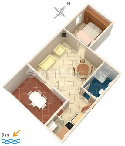 House decorated with two apartments in Zečevo near Rogoznica, located just 5 meters from the sea. The right place for vacation!