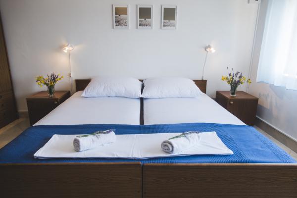 Apartments Maslina are located in a family house, fully equipped, with a view of the sea and the possibility of using the barbecue. The courtyard is decorated with a vivid garden full of Mediterranean herbs (figs, olives, rosemary, lavender, grape vines ...) dominated by hundreds of years old olive trees. Apartments have air conditioning and the distance to the sea is only 70 meters. In the immediate vicinity of the building there is own parking. The south apartment consists of two bedrooms, fully equipped kitchens, bathrooms and spacious terraces with unobstructed sea views. The north apartment consists of an entrance hall, rooms, fully equipped kitchens, bathrooms and smaller terraces overlooking the sea. We offer the ability to bind the ship with dead body. Give yourself a vacation in a beautiful setting, enjoying the clear blue sea and beautiful sunsets.