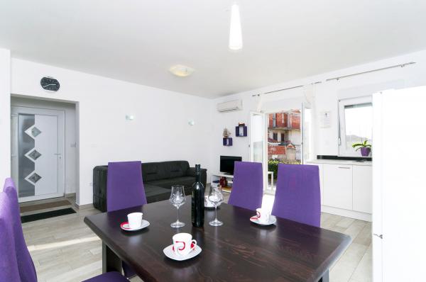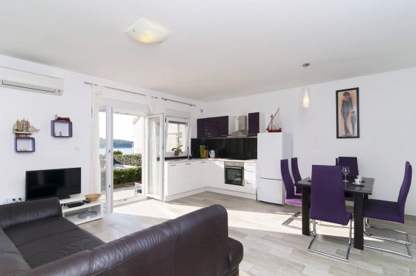 The apartments location is great. Very spacious rooms. The fully-equipped apartments have separate entrances, as well as free WiFi access. Very clean apartments. Free private parking is available on site. It is very quiet place but there's everything here you would need. Only 30 meters from a pebbly beach and nice sea. Balcony and rooms with sea view. Friendly owners.