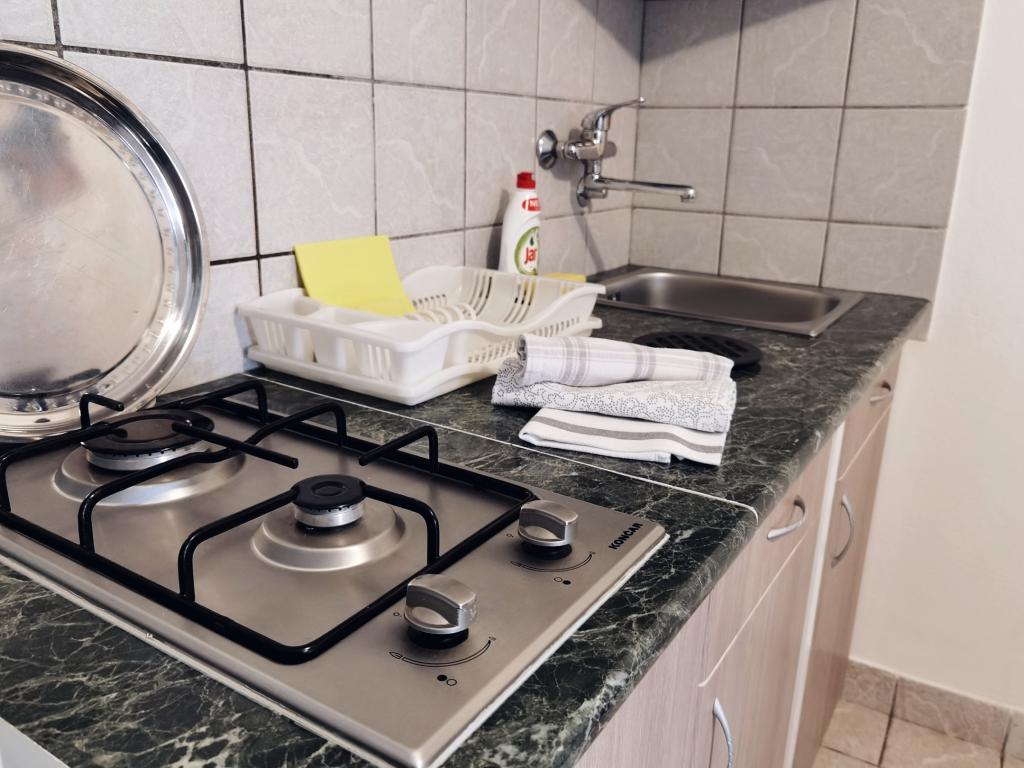 Apartments Slavica are located on a small hill in Rogoznica in Šibenik-Knin County. We offer 3 accommodation units in our apartment house. 2x Apartment studio 2+2, and 1x Apartment 4+2. We are about 180-200m away from the beach. As part of our facility, we offer you free WiFi, barbecue equipment, air conditioning and free private parking. All our apartments have a view of the sea and the yard. All apartments have a fully equipped kitchen with a refrigerator and a stove and a private bathroom with a bathtub or shower.