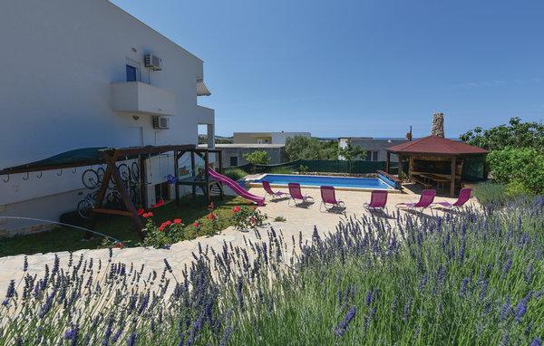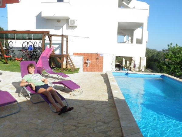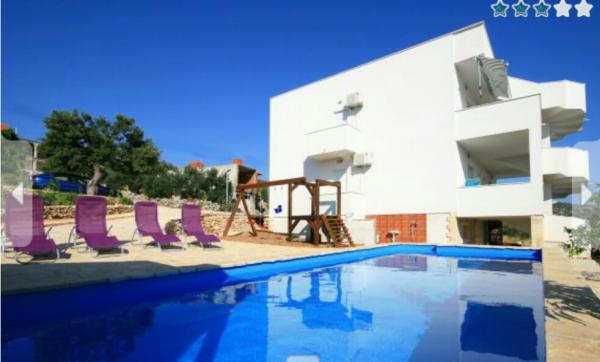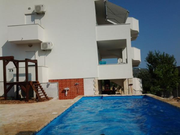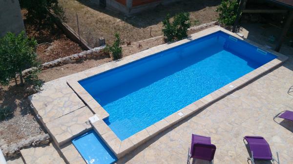 Villa Lavanda is located in a quiet part of Rogoznica, away from the center 1 km, with a beautiful view of the place and the whole archipelago. It consists of 4 modern furnished apartment size 48 m2 solar dogrijavanim common pool of 30 m2. The apartments consist of two double bedrooms, a kitchen and a living room with sofa bed, bathroom with toilet, separate toilet, and a terrace overlooking the sea the size of 10 m2. App is a parking lot. Guests have at their disposal, deck chairs by the pool, grill, billiards, foosball, darts and a playground with swings and slides. Over the entire facility is fenced terrace with a beautiful view of the jacuzzi where the deck chairs.