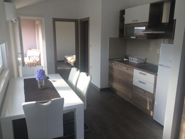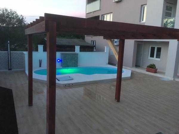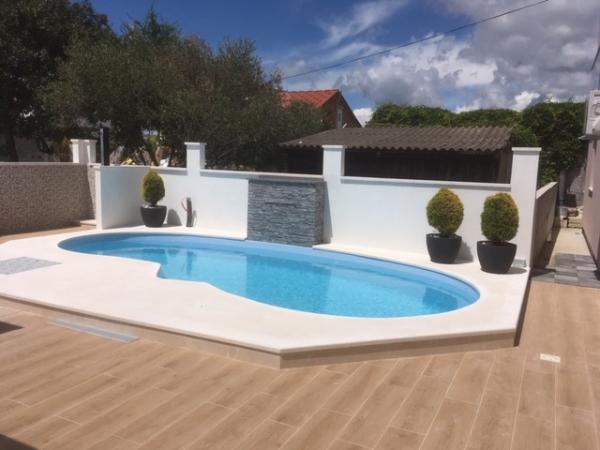 New fully equipped house with three apartments in beautiful Rogoznica. Each floor has one apartment. The apartments are located in a quiet area, easy access by car for a five-minute walk to the beautiful beaches of Lozica and Sepurin, which are rich in facilities for children and adults. The apartments are luxuriously furnished and have large covered terraces. In the courtyard there is a salt water pool and a waterfall with a large sun deck with deck chairs and a large pergola for enjoying the sun or shade. The courtyard has a barbecue and comfortable car parking. The center is a ten-minute walk away, ideal for an evening stroll.