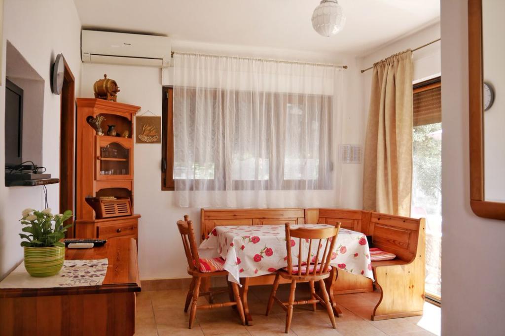On the Rogoznica coast, near the sea, there is a house surrounded by flowers and greenery, Mediterranean fruit trees and herbs, whose spacious garden is dominated by an impressive Mediterranean holm oak, and has everything you need for rest and relaxation. We are convinced that you, as our guests, would also enjoy the clear sea, the shade of our holm oak tree and the quiet and peaceful nights. We look forward to your arrival! Apartment Dora (A4) is ideal for a family with children. The 60 m2 area includes a kitchen with a kitchenette, two bedrooms, a bathroom with a shower and a toilet. The apartment is located on the first floor, from where you can enjoy a view of the sea and the courtyard. Apartment Ivana (A 2+1) is ideal for a small family or couple. The 45 m2 area includes a kitchen with a kitchenette, a separate bedroom with a double bed and an extra bed for a child, and a bathroom with a shower and a toilet. The apartment is located on the ground floor and has access to the courtyard from which there is a beautiful view of the sea and the garden.
