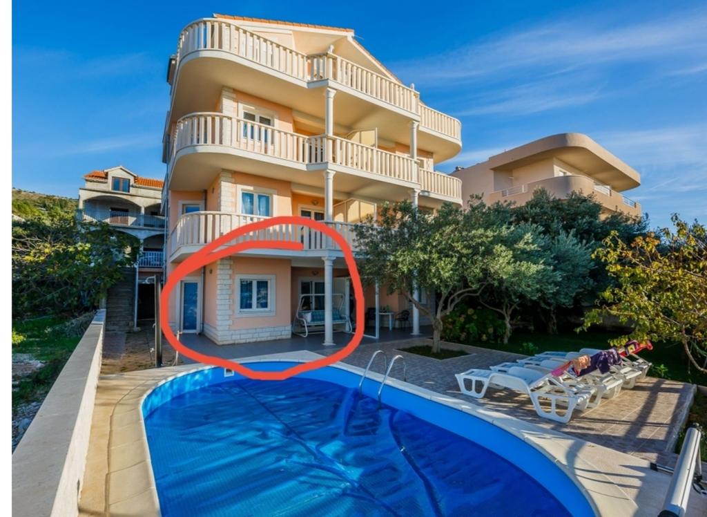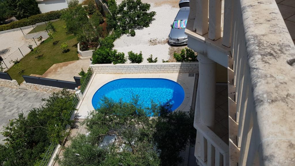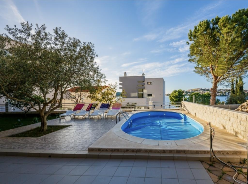 Enjoy apartments with sea view and swimming pool, near the pebble beach overlooking Rogoznica and the open sea. Zatoglav is a quiet place away from the main road, noise and crowds, and is only a few kilometers from Rogoznica. We have 6 apartments for 24 people. 4 apartments have one comfortable bedroom, kitchen with stove and oven, extra large sofa for two adults, bathroom, terrace, air conditioning, 5th apartment on the top floor has 2 bedrooms, 2 bathrooms and a large terrace, the sixth is on the ground floor for 3 people. The price includes tourist tax, clean bed linen, air conditioning, towels and dishes, use of outdoor shower and barbecue. Ps The beach is exactly 66 meters walk from the house, or 27 meters as the crow flies. Welcome