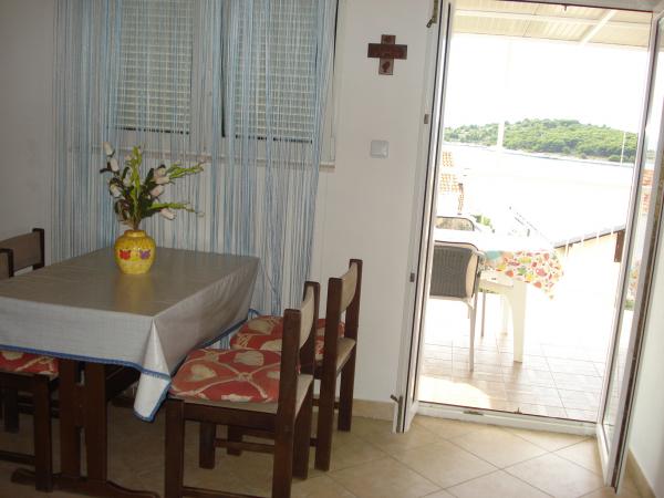 Apartments are located in the bay near Hares where there are only twenty houses. Aprtman away from Rogoznica 3 km from Primosten 6 km. The beach is pebbly with especially clean water. It is suitable for anyone looking for a quiet holiday. The balcony offers a beautiful view of the sea and islands. The house has parking space. Every morning in the village supply comes with all the necessary ingredients for breakfast. The facility is located near two national parks such as: Kornati and Krka distance of approximately 30 km, and is located 20 km from Trogir and 30 km from Sibenik.