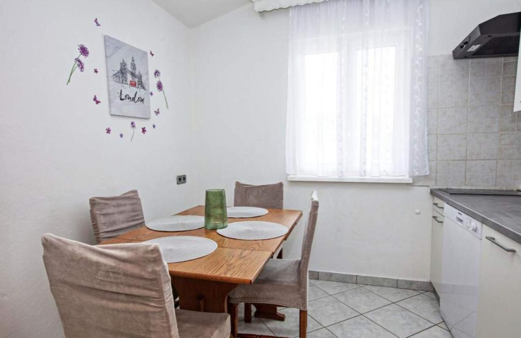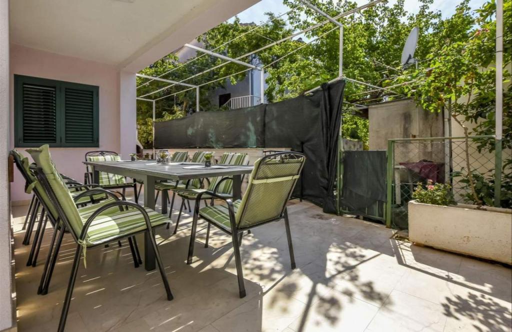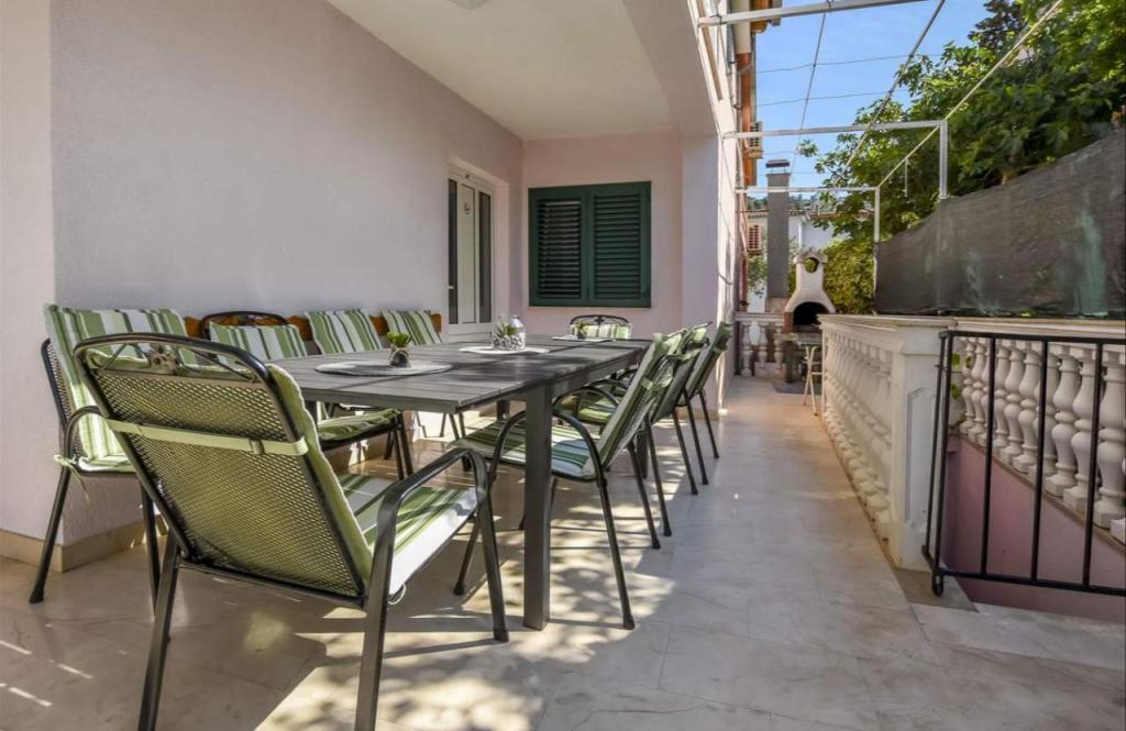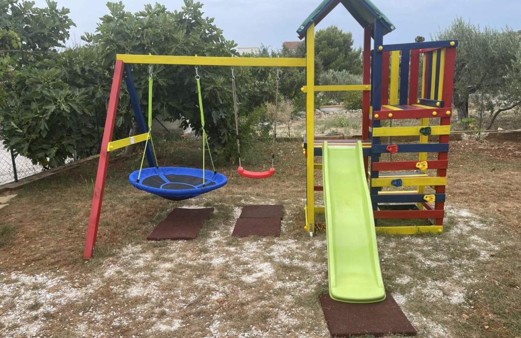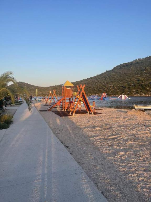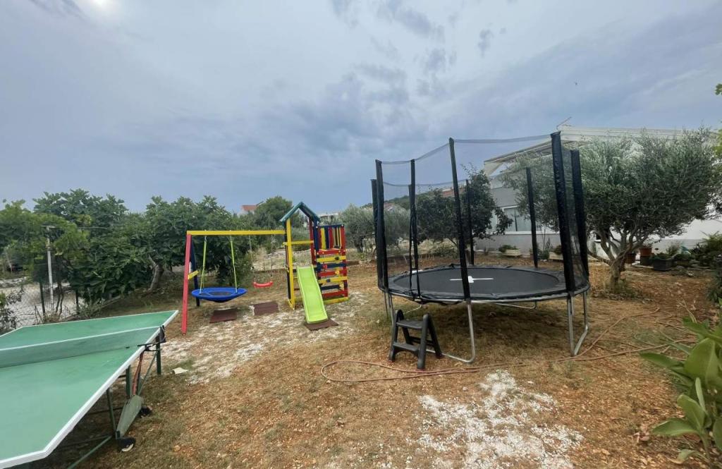 Located only 40 m from the sea, this beautiful vacation house Lucija can accommodate up to 10 people. The house consists of two separate apartments that are available only for guests. The house is spacious and has a well-equipped kitchen, a comfortable living room, 4 bedrooms and 2 bathrooms. A beautifully landscaped yard with a barbecue is ideal for outdoor gatherings. In addition, families with children can enjoy the children's playground, which includes a trampoline and table tennis, ensuring an unforgettable experience for the whole family.