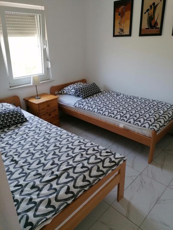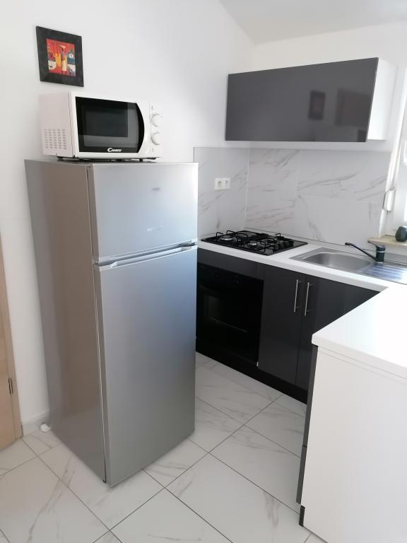 An apartment for four people is for rent. Location Rovanjska near Zadar. The apartment is on the first floor. It consists of a living room, a separate kitchen with a fridge, microwave and oven. Two bedrooms, one of which has a double bed and the other room has two beds. Bathroom with shower. The apartment has a separate balcony and air conditioning. The apartment has a separate parking for one car and a view of the sea. It is in a quiet street (the last apartment in the street). The distance from the sea is about 500 meters. Rovanjska has two beaches. One is concrete and the other gravel.