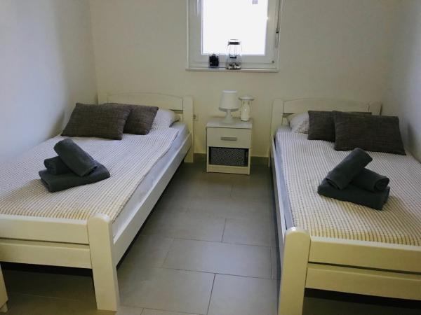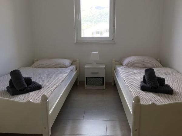 The beautiful Rovanjska is located in a cove at the very end of Podvelebitska canal, not far from Zadar. The vicinity of Velebit enriches this region with its parks, caves, promenades and cycling trails. Cave Modrič is a speleological fortune at the foot of Velebit, and the church of St. Jura is a pearl of old Croatian sacral architecture. Near Paklenica National Park is 8 km, National Park Plitvice Lakes is about 95 km away and National Park Krka is about 85 km away. Apartments are 200m away from the bus station, 400m from the beach, 30km from Zadar airport and ferry port. The terrace offers a beautiful view of the sea and a particularly beautiful sunset. Apartments are modern and fully equipped.