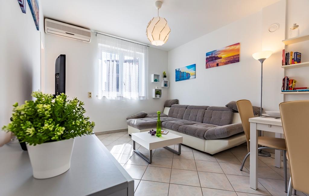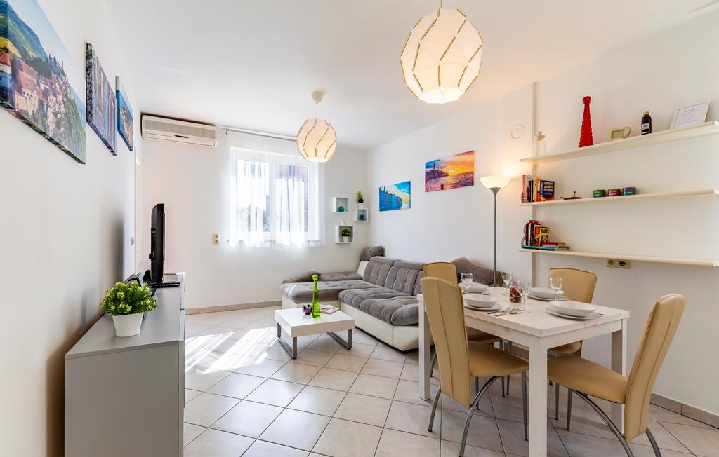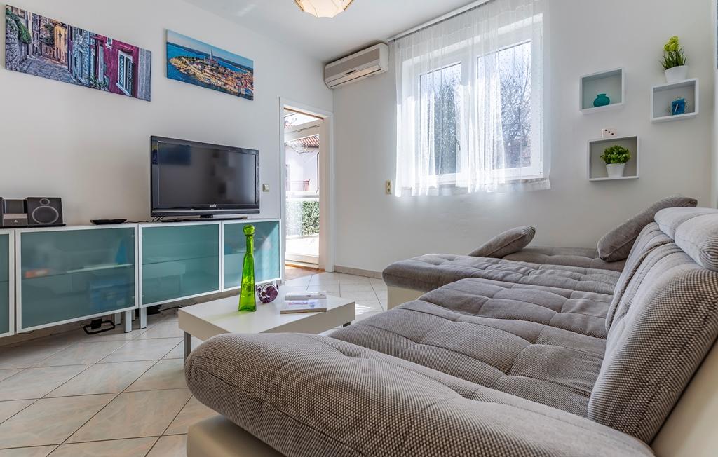 Modernly decorated apartment in a quiet part of Rovinj, only 500 meters from the beach and 1500 meters from the city center. The apartment has free internet, air conditioning, terrace and private parking.