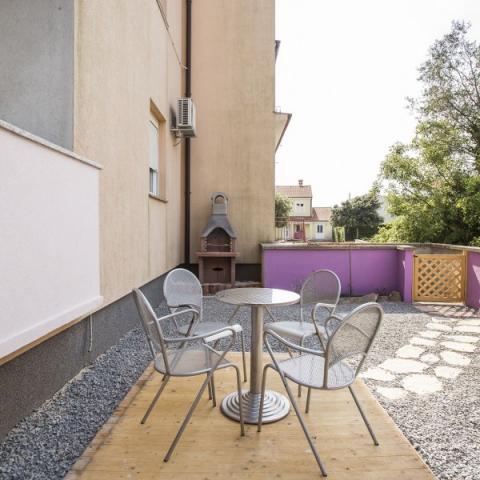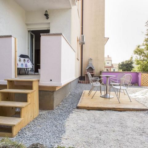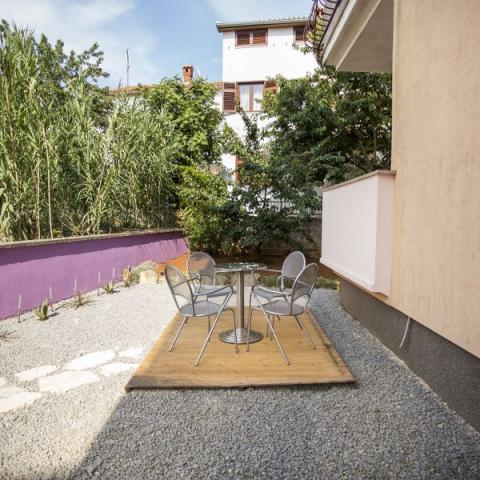 Comfortable, furnished apartment of 70 m2 in a quiet part of Rovinj, 15 minutes easy walk away from the center of town. In the apartment there is a kitchen with living room, two bedrooms, bathroom and terrace on the sunny side. On the terrace there is communication with a garden where there is a table with chairs and a fireplace for use. The apartment is equipped with air conditioning and has internet access. Secured free parking. Shop, pharmacy, hairdresser and beauty salon located 50 m away. Shopping centers are 1 km away. Distance from the sea 900 m. The apartment has a capacity for 4 people, but there is also an extra bed in the living room for a child. Come and spend a summer of memories in beautiful Rovinj!