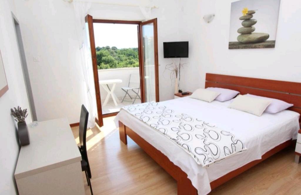Modernly decorated rooms and apartment with air conditioning, television, kettle, refrigerator, bathroom and terrace. The apartment has a washing machine and dishwasher. Each room has its own parking space (free). The nearest market is 3 minutes walk away, and the nearest restaurant is 5 minutes.