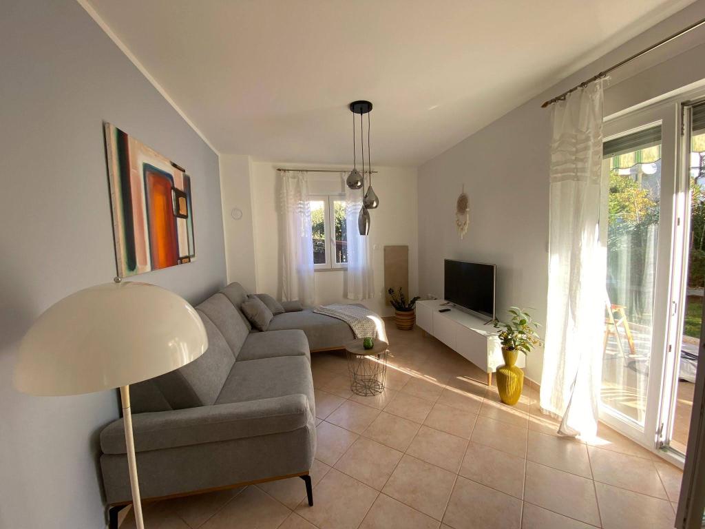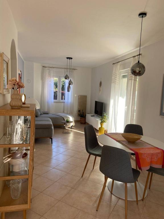 Apartment Lea is located in the village of Borik in Rovinj, in a quiet and green area. It is a 30-minute walk or 2 km to the city center. The apartment is rented for the first time. It is located on the ground floor of a building with several apartments, with a separate entrance with a small garden and terrace. The apartment has 2 bedrooms with a double bed (160x200, 140x 200), a living room with a fully equipped kitchen, as well as a bathroom with a shower cabin. Nearby (50-100 m) there is a small supermarket and 2 restaurants. The beach (pebbles) is only a 5-minute walk away. A small part of the beach is intended for dog lovers. Next to the beach itself is a long promenade with restaurants and children's playgrounds, as well as the possibility to rent paddle boats and other sports equipment.