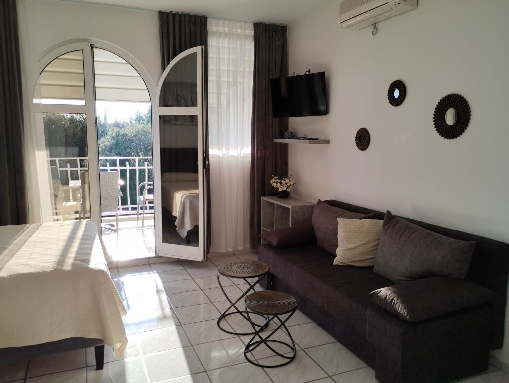 Read more Accommodation unitsArrival time is 3 pm onwards Departure is until 10 am Reservation: Advance payment for reservation is up to 30% of the amount. The rest is paid in cash on the day of arrival. Additional costs: Extra bed €20 / 1 night. Final cleaning is €30 for a small or €40 for a large apartment. The price for a dog is 15 € / 1 night (in spring and autumn you have a discount) A small dog up to 5 kg is 10 € / 1 night We do NOT accept dangerous and large breeds of dogs Apartment number 5 and App. number 6 / DOES NOT accept pets.