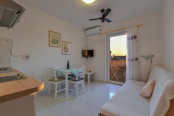 Newly renovated apartments and studio apartments in a quiet residential part of town, just a few minutes walk to the beach and 2 km from the center of town, accessible by a lovely seafront promenade, ideal for romantic walks. Apartments are fully equipped and have terraces, some with a sea view. Guests can use the garden and barbecue area with large wooden table for cozy gatherings, surrounded by greenery. Pets are welcome (5 eur/day), and dogs can dispose of a fenced yard where they can move freely. Parking is in the yard.