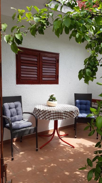 The apartment of Zeljko have one bedroom with a lovely big bed and wardrobe, kitchen with a couch, table and chairs as well as all possible utensilities. A bathroom with a shower and cupboard was good equipped and clean like the whole appartment. We had a beautiful terrace in the garden close to plum tree. So you can have a breakfast or dinner in the fresh air. We had a good wifi and parking lot in the yard for free. Zeljko was the best host we ever had. As we arrived we had some typically croatian drink with a juice from Zeljko as a present. It was very pleasant to be meet in such way, but Zeljko didn\'t stop to gave us much more presents during our stay. He explained us everything about good locations, beaches and souvenirs. So we were best informed and enjoyed our stay. I would recommend everybody to stay in this apartment by very hospitable host.
