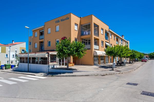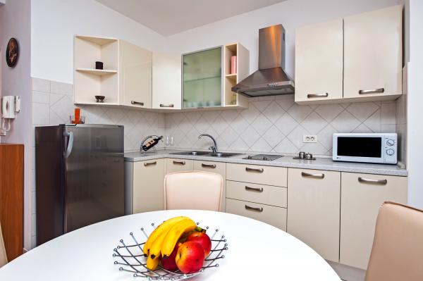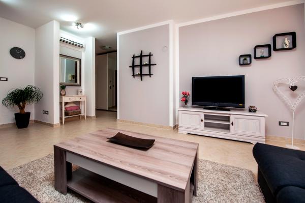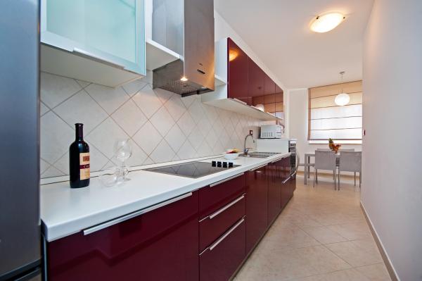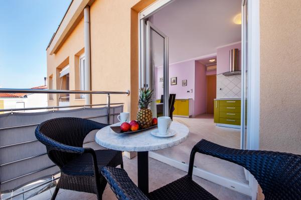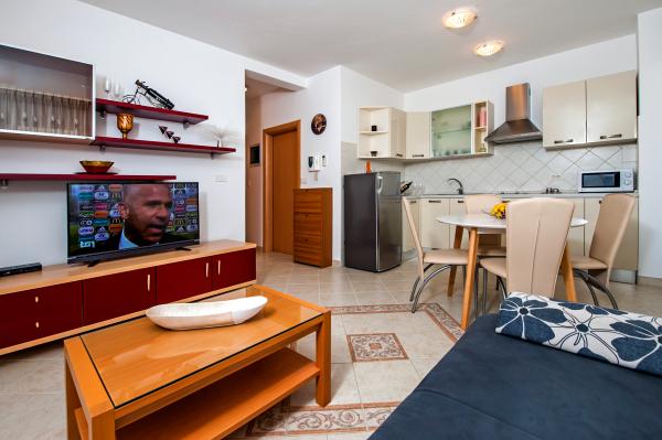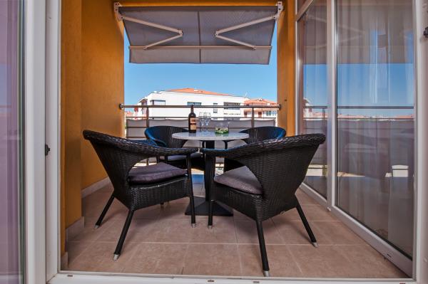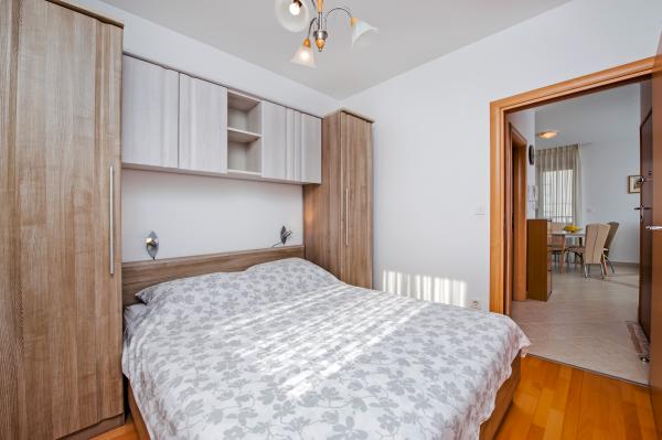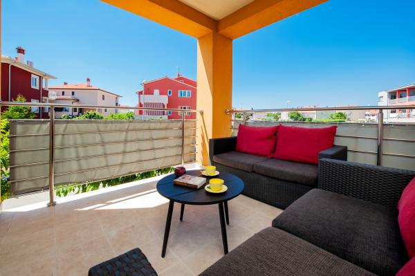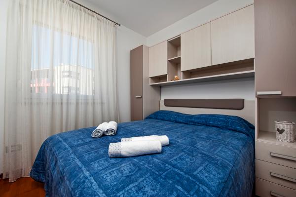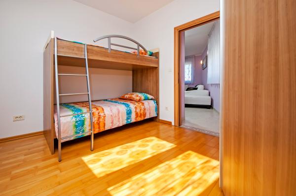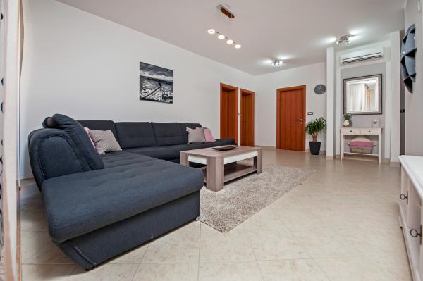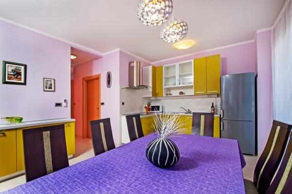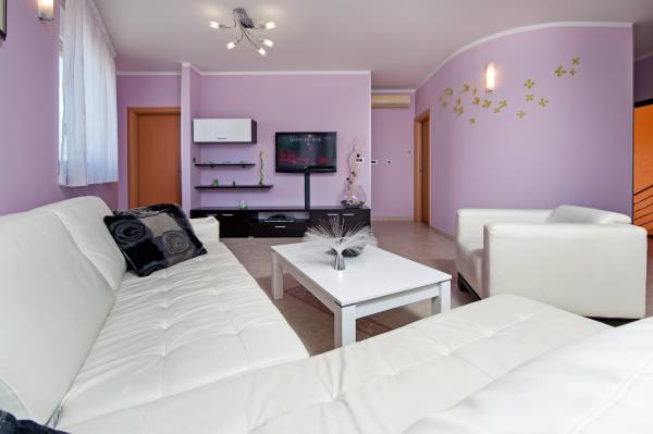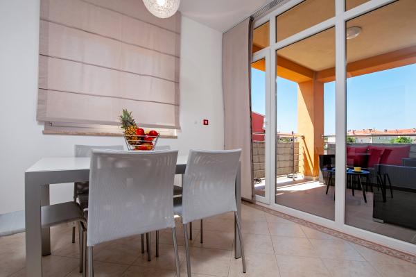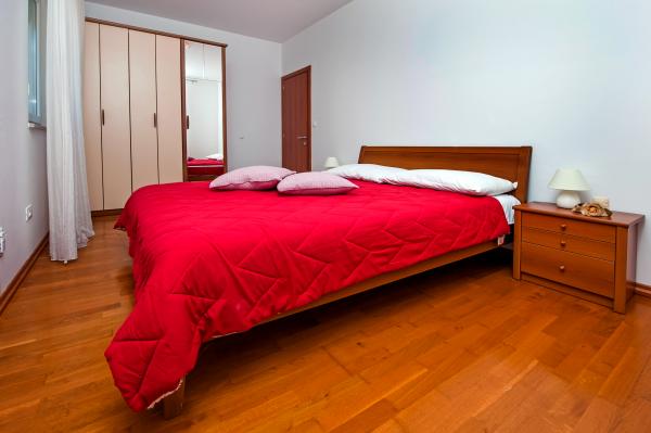 Modern apartments are situated at the entrance of Rovinj. It takes 15 minutes walk to the city center and the same distance to the beach. Each apartment has its own parking place. Smaller apartment (A2) is located on the first floor and can accommodate 4 persons (2 2). It is a room with a double bed, bathroom and kitchen and living room with sofa bed. From the kitchen you have access to the balcony. It has an air-conditioning and microwave. On the second floor is a large apartment (A6), can accommodate 8 persons (6 2). It contains 3 bedrooms, two of them with double beds and one with bunk bed. In addition, the living room has a sofa bed and two bathrooms and two balconies. At your disposal are two air conditioners and microwave.