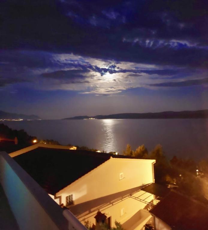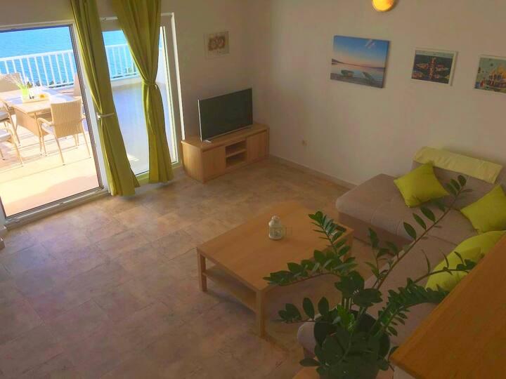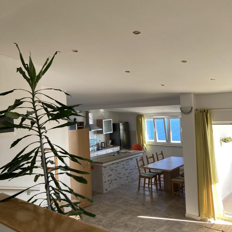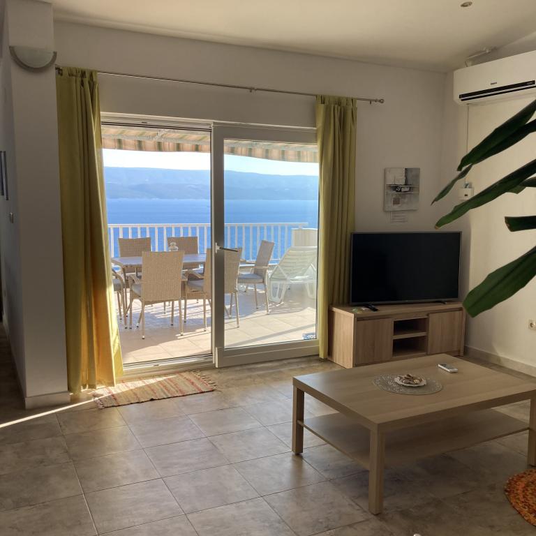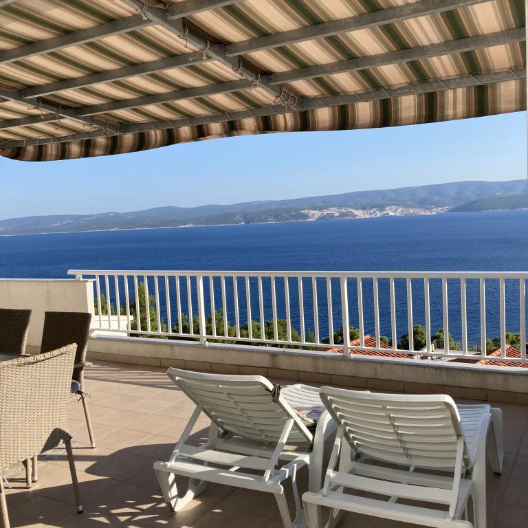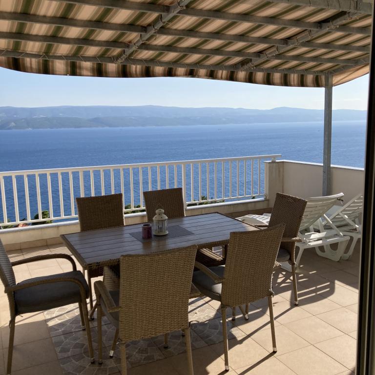 We were with the children in the velvet penthouse apartment, which is huge, we were delighted that one of the bedrooms had its own separate bathroom and there was another bathroom and a small toilet, which is great for a large family. The view from the terrace of Brač and the islands is truly breathtaking, an amazing apartment well equipped with everything you need. We spent most of our time on the terrace because it has a swing and deckchairs and we can't wait to come back next year, we wholeheartedly recommend it to everyone who wants to rest and enjoy.