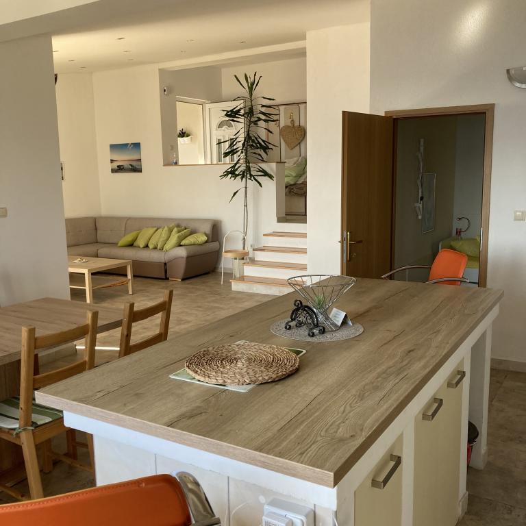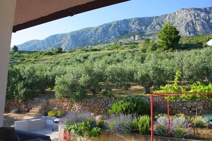 Ideal for those who like to be isolated from the usual summer noise and crowd, but still not far from the sea. Each apartment has its own entrance and complete privacy. The view of the sea from all balconies is unforgettable. It is comfortable, equipped with all facilities and very clean, new and beautiful. Velvet penthouse, Big Blue and Orange are three newly built, spacious and comfortable apartments with a view of the sea and islands, with the natural shade of vines and fig trees. Choose your favorite color, come and relax like never before! The house has a large garden, a garden and an olive grove, and a fireplace. The house is located in a quiet part of town surrounded by an olive grove. In the area of the house there are 2 stone fireplaces for grilling, a large yard and a parking lot. Instagram: apartmani.dragana In the garden of the house you can find and pick aromatic herbs such as rosemary and sage, lavender, various spices and listen to the bees dancing around them. It smells like Dalmatia. Instagram: apartmani.dragana