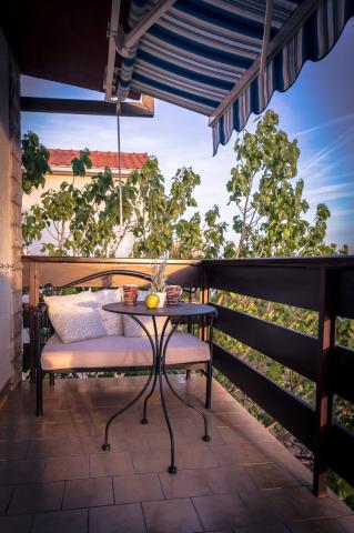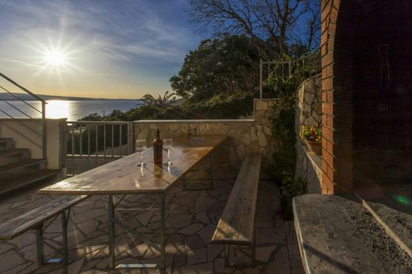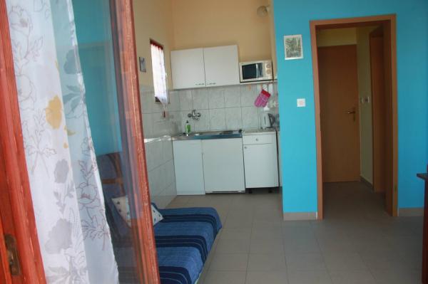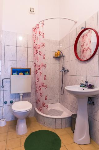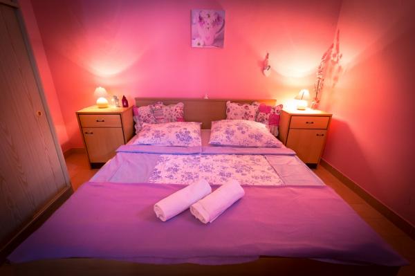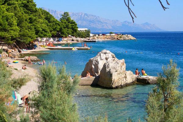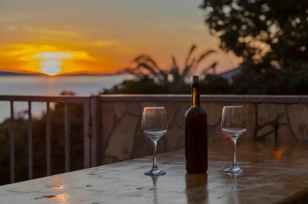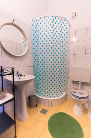 I would recommend for people who are looking for peace. Intimate and clean beach, beautiful rocks, you do not need to carry an umbrella because you can hide in the shade of spreading pines. There is a shower on the beach. Hosts are very nice and you can talk to all topics. We spoke in English, but Croats can safely get speak in Polish. Rooms clean, neat. We had 2 rooms for 2 persons, together with well equipped kitchen and bathroom, the rooms has large balcony overlooking the sea. On the back of the house is mountain . Barbecue is in the yard. I would recommend taking some food from the Polish, because Croatia is expensive. In the nearby there is a pizzeria. ( tasty pizza). If you tired of peaceful idyll, than you can go by car to Omiš (approx. 6 km). It is a charming tourist town with a large beach (and here you have umbrellas). We were in the Krka National Park, Split, Trogir and Dubrovnik. The first moment is surprising because the driveway to the house is much uphill. We made it. Nice holiday.