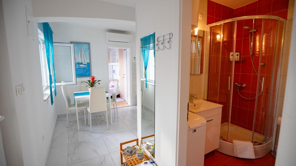 Beautiful apartment, luxuriously furnished with a large terrace from which a beautiful view of the sea. Plaza is close to the beach is a nice pathway to walk. The owner is very friendly and helpful. Here we spent a beautiful vacation in Dalmatia. We will gladly come back. Recommendations I have all my friends. Mateja
