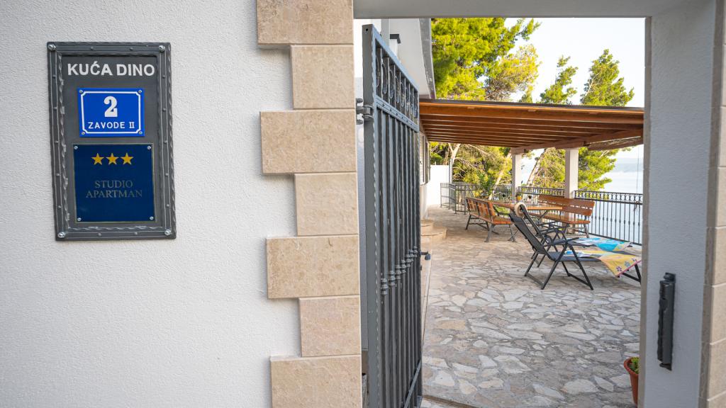 House Dino is an independent facility, completely renovated in April 2015, with a possibility of 4 people, with the possibility of one extra bed. It consists of 2 bedrooms, living room with kitchen and bathroom on an area of 42 square meters. The kitchen is fully equipped with dishes, cutlery, refrigerator, stove, dishwasher, microwave, coffee maker and kettle. In the kitchen is a table with four chairs. Each room consists of a double bed 160 x 200 cm, cabinets and shelves with lamps. The house has air conditioning and LCD TV in the living room and Wi-Fi internet. Bed linen, towels, air conditioning, wi-fi and taxes are included. The terrace offers a beautiful, unobstructed views of the sea and the island of Brac. The pebble beach below the house is steps away about 100 meters, and in the vicinity there are several beautiful beaches.
