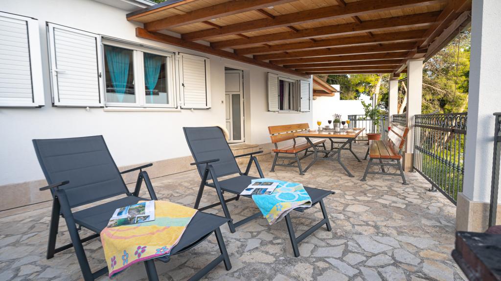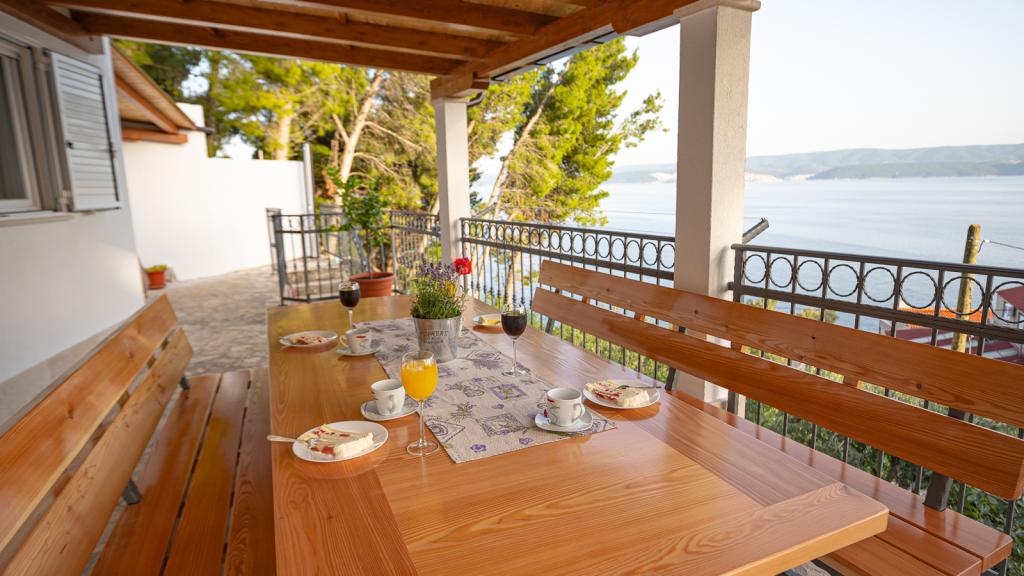 Residential tax is included in price. Booking confirmation document upon reservationLuxuriously appointed space and terrace. Everything is extremely clean, tidy and exquisitely maintained, the owners have taken care of every detail. The bedrooms are spacious with comfortable beds, the kitchen is equipped, extremely clean and tidy, just like the toilet. The terrace is spacious, very nicely decorated, covered. There is also an outdoor shower on the terrace. The view on the sea and Brac is beautiful. Quiet place, it was really nice for us with a little kid. The beaches are beautiful and there is shade, the sea is close. The owners - friendly and professional, we easily agreed, could really be an example of how to treat a guest.