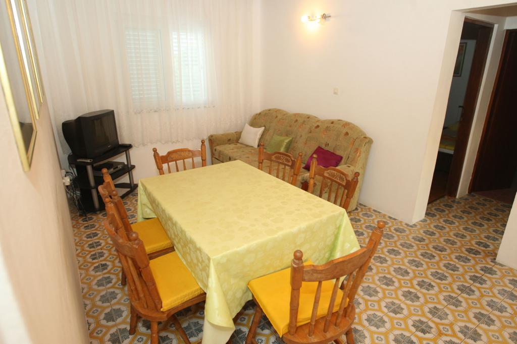 Apartment ASJA is located on the ground floor of a family house in the holiday-village of Sabunike. The hosts live on the first floor. It consists of three bedrooms, living room, kitchen, bathroom with toilet, separate toilet and covered terrace. The house also has a garage and one parking space. The kitchen is equipped with a fridge with freezer, microwave oven, filter coffee maker, electric kettle and stove with oven. The terrace is equipped with table and chairs and you can use the barbecue as well. The apartment has WiFi internet, TV and satellite channels. The bathroom has a shower, toilet, washbasin. Towels and bedlinen are changed once a week. In front of the apartment is a courtyard with deck chairs. The apartment is equipped with air conditioning.