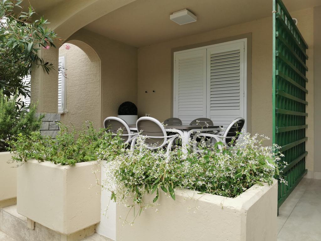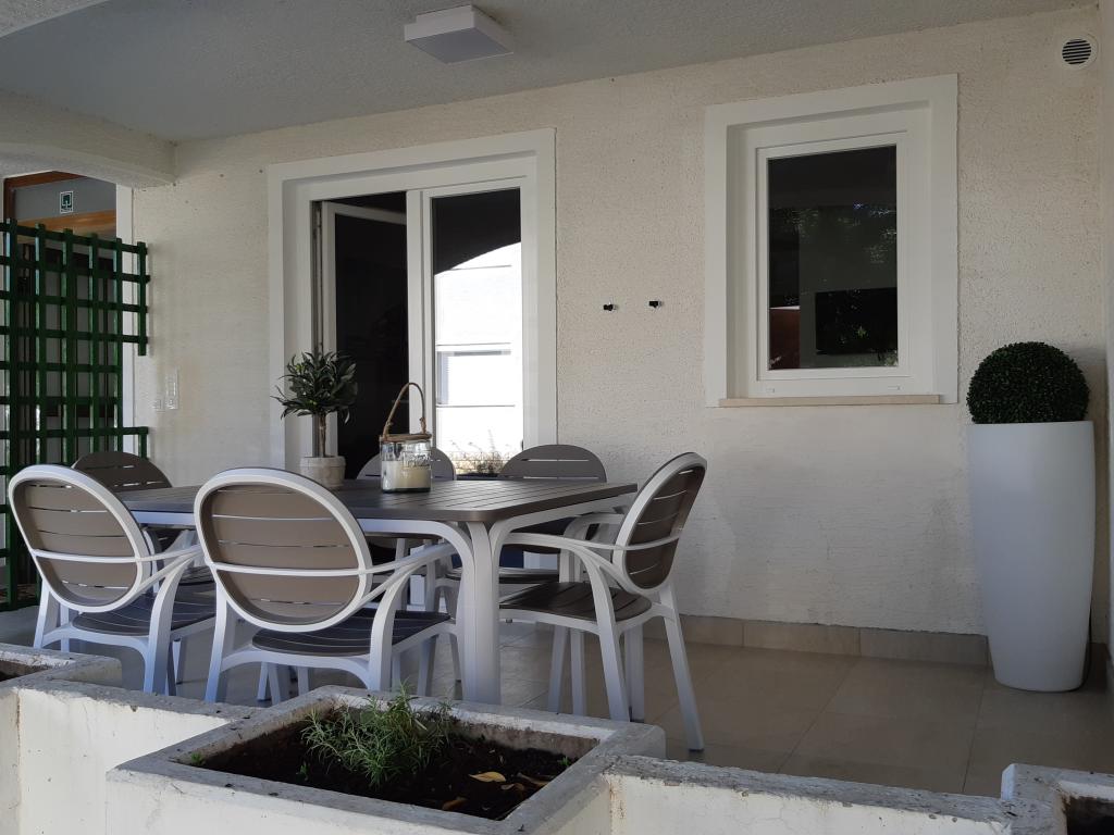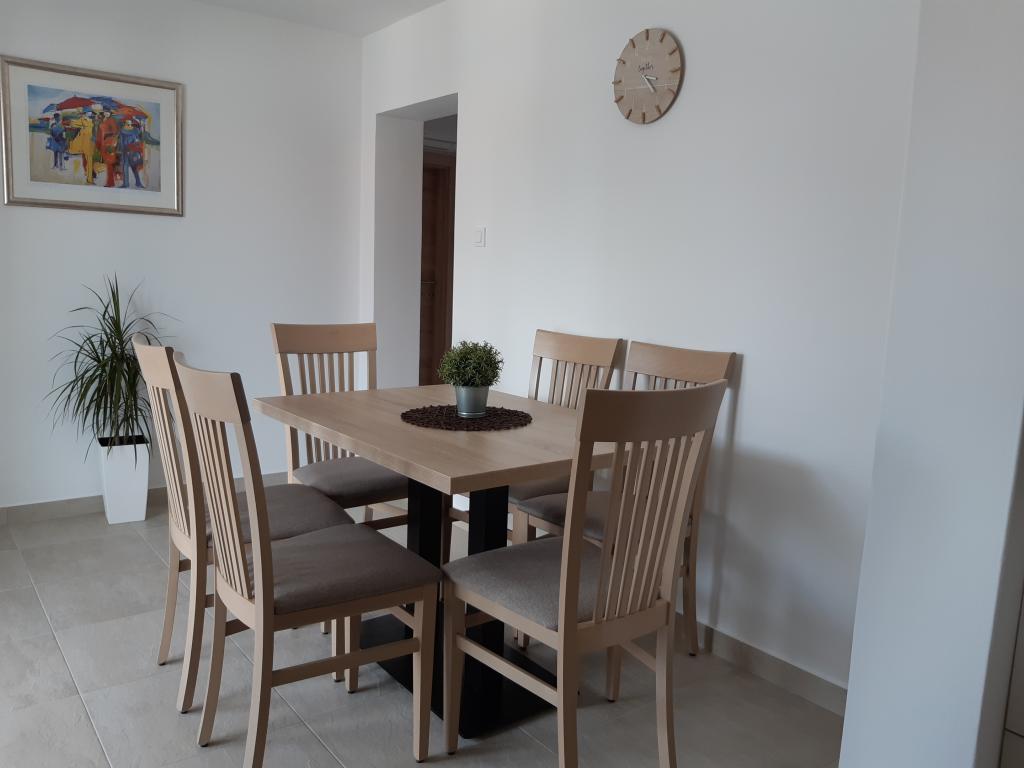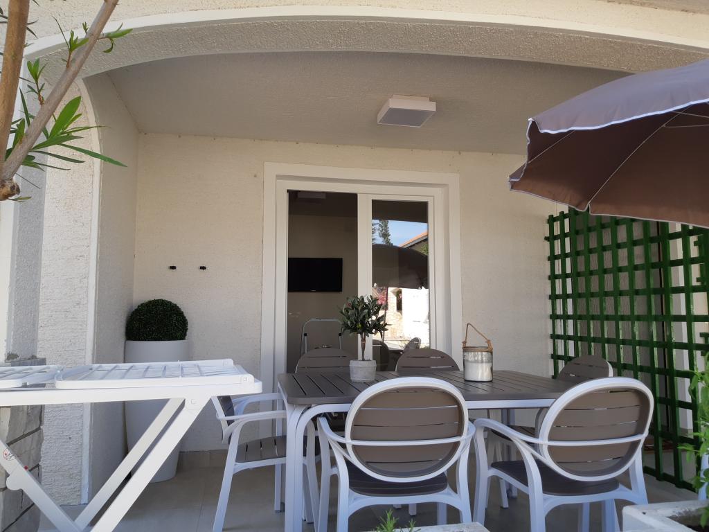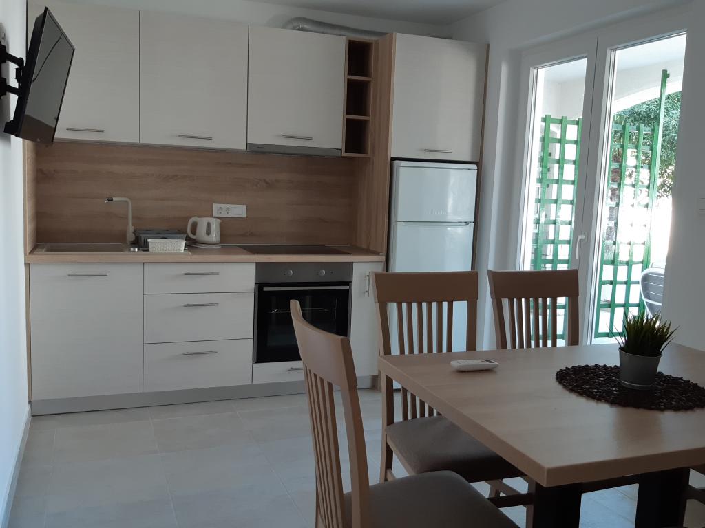 The house is located in a nice location in a cul-de-sac. Nearby is a beach, a sports park with many facilities, restaurants and taverns, a bakery and a small shop. The apartment is modernly furnished, the kitchen is equipped with all utensils, including cutting knives. The only thing missing was the dishwasher. The terrace is in the shade and we had covered parking. You have to go down the stairs to get to the beach. The apartment has two stars and not three stars as it says in the ad. We only noticed this when we asked why we didn't have towels. This was then delivered to us, although they mentioned earlier that they did not have this in the two-star suite. They also don't have the possibility to change the bedding, so you will have to sleep on the same bed for the whole vacation, which combined with a sandy beach and 40°C is not the best combination. The ad says that the apartment has 50 m2, which is realistic only if the terrace is included. The actual size of the apartment is approx. 35 m2. If I had this information before booking, I would not have chosen this apartment, as there are many vacancies in Sabunika. Before booking, check with the owner about the size of the apartment and how many stars it has.