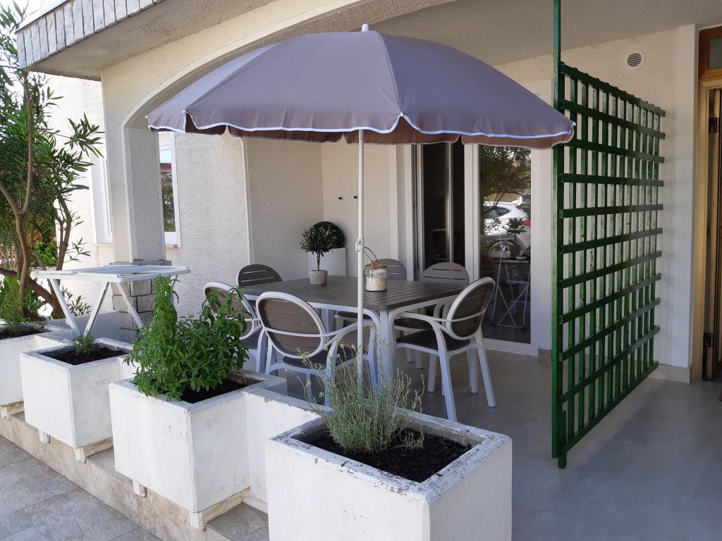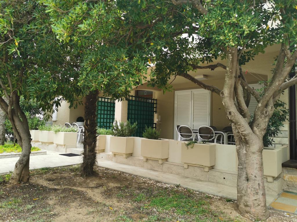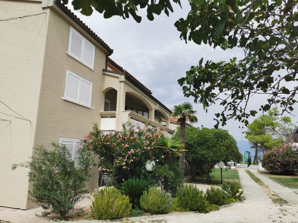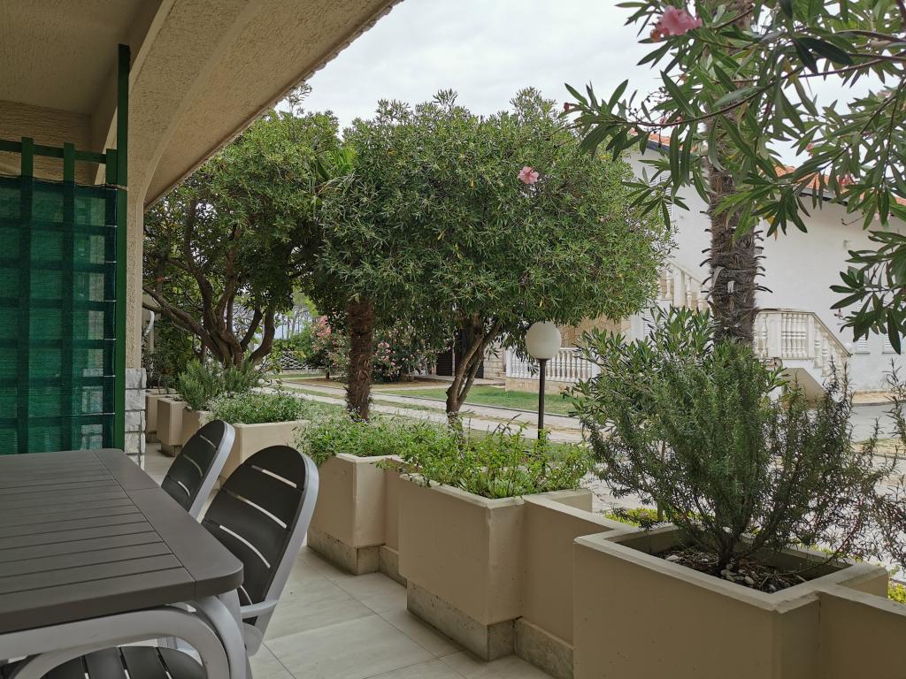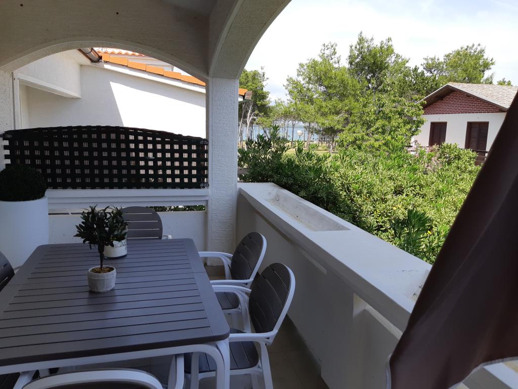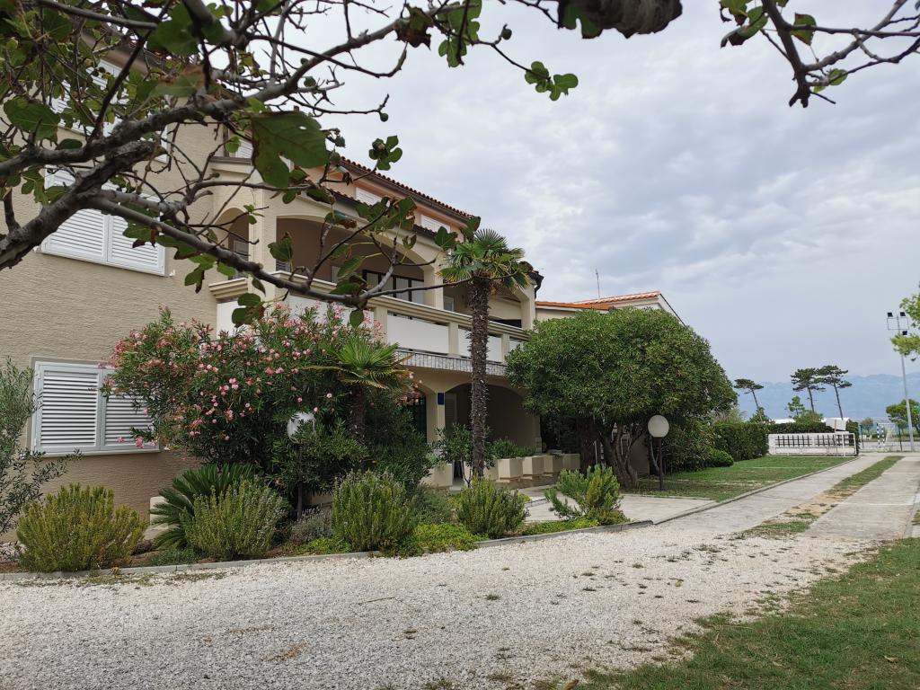 Newly and modernly furnished apartments. Location in the settlement - first row to the sea. Apartments with two bedrooms (one with a double bed, and the other with two separate), kitchen with dining room, covered terrace, bathroom with toilet and shower. TV, kettle, microwave oven, hob, oven, fridge with small freezer. Two-seater in the dining room (extra bed for 2 persons) or in the room with a double bed (extra bed for 1 person). Promenade to the center of the village - shop, bakery, fruit shop, coffee bar, ice cream - 2 min walk. The first restaurant 50 m. In front of the building there is a park and a pine forest with sports facilities and a fenced new children's playground. Two coffee bars in the park. Closed courtyard of our facility. Air conditioning, parking covered with a protective net, Wi-fi, fees and taxes, outdoor shower and use of grill included in the price.
