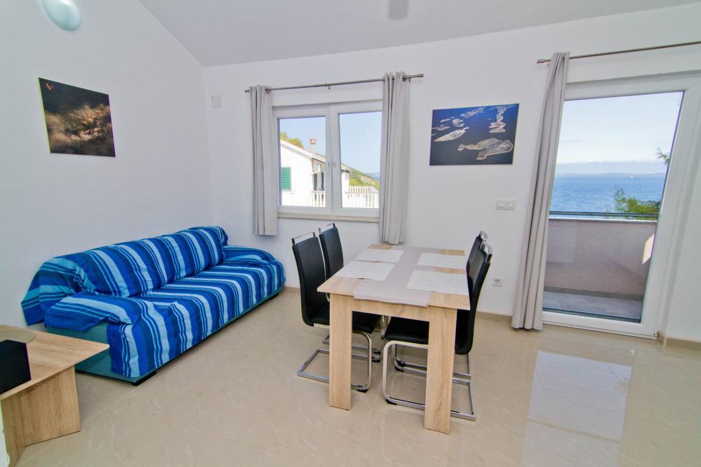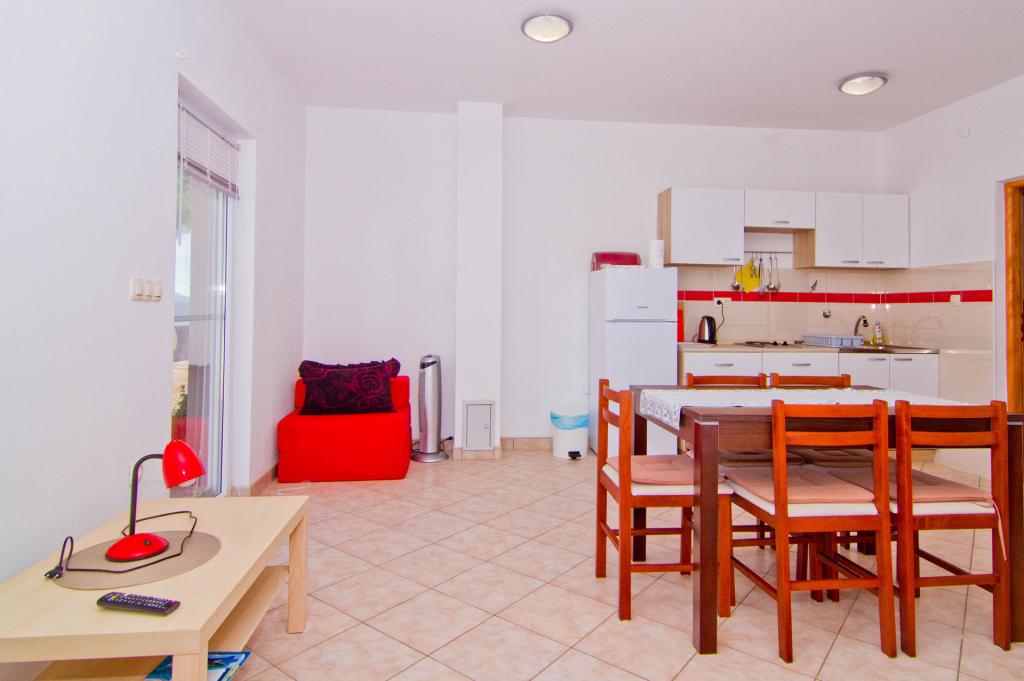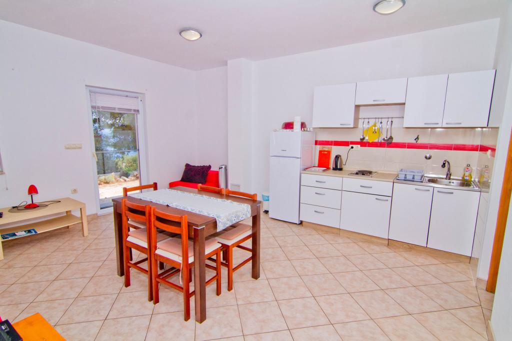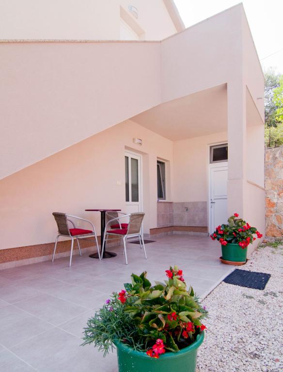Apartments located in a new building in a quiet street with a beautiful view of the sea, islands and Velebit. Each apartment has a separate entrance. The apartments are fully equipped for a pleasant summer vacation and have one parking space in the yard. They are equipped with a TV set and a wireless network (Wi-Fi). Bed linen and bathroom towels are included in the rental price. Guaranteed use of the barbecue in the yard. Apartment 4, air-conditioned, 45 m2, located on the first floor, has a double bedroom and a children's bedroom with two beds each. The balcony is 6 m2 and the terrace 9 m2. The kitchen connected to the dining room is equipped with basic kitchen appliances, cooking and serving utensils. Apartment 2+2, air-conditioned, surface 45 m2, is located on the ground floor and has a double bedroom and the possibility of a double bed in the living room. Terrace of 9 m2. The kitchen connected to the dining room is equipped with basic kitchen appliances, cooking and serving utensils. Pets are not allowed